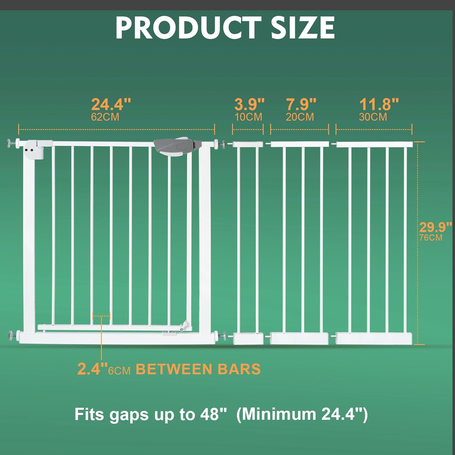 SKY-TOUCH Auto Close Safety Baby Gate, Extra Wide Child Gate with 30 cm Extension Kit Maximum Suitable For 114 cm, Baby Gates for Stairs & Doorways, Easy Install (Safety Railing + 30cm Extension Kit)
