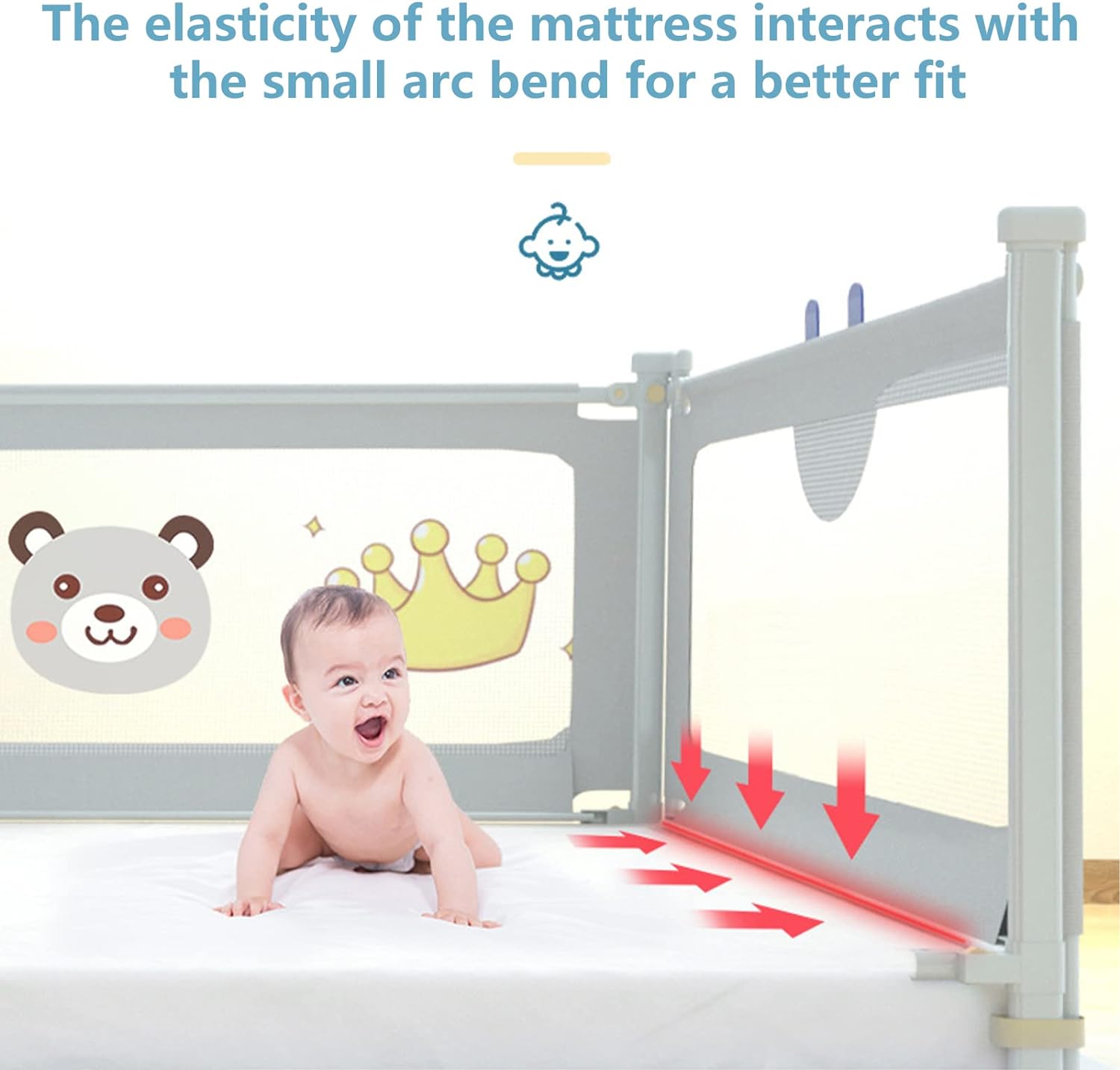 【Safe Seamless Design】: This sturdy Child Bed Safety Rail use thicker steel pipes to strengthen the load bearing; seamless press design, tightly pressing the mattress, truly seamless between the guardrail and the mattress, preventing the baby from getting stuck in the head or hands and feet;Kids bed rails with safety child locks provide double lock protection to prevent the baby from accidentally pressing Lift button.