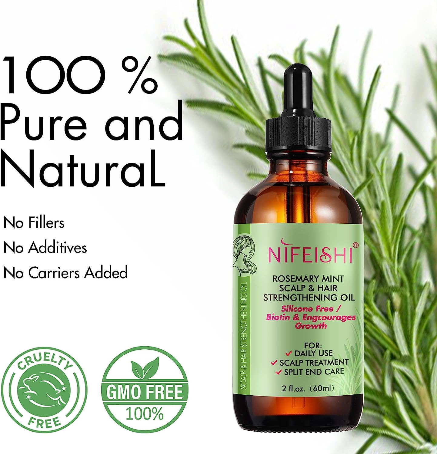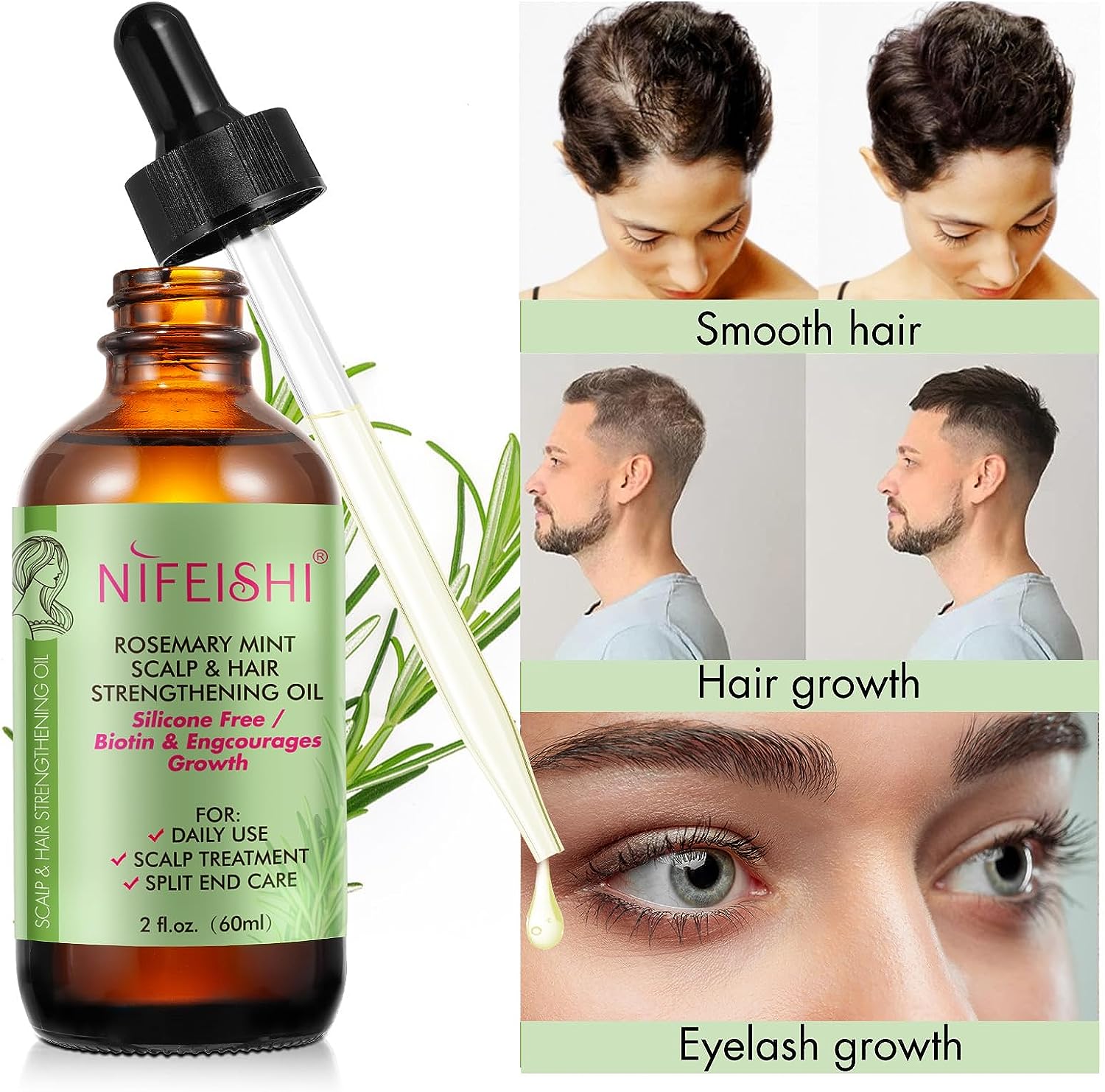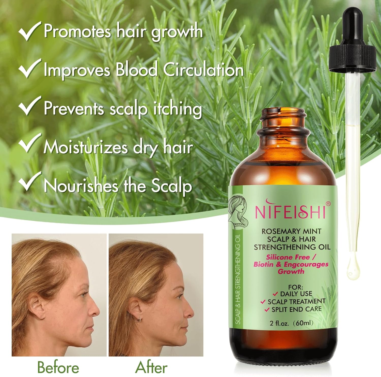 【100% Pure & Natural Essential Oil】---- A nutrient-rich, fortifying formula infused with biotin, whose tonic properties help stimulate hair follicles, lengthen and strengthen hair while slowing graying, reducing hair loss, Repair Damaged Hair and moisturizing dry scalp to relieve dandruff. It is great for you relaxation and better sleeping.