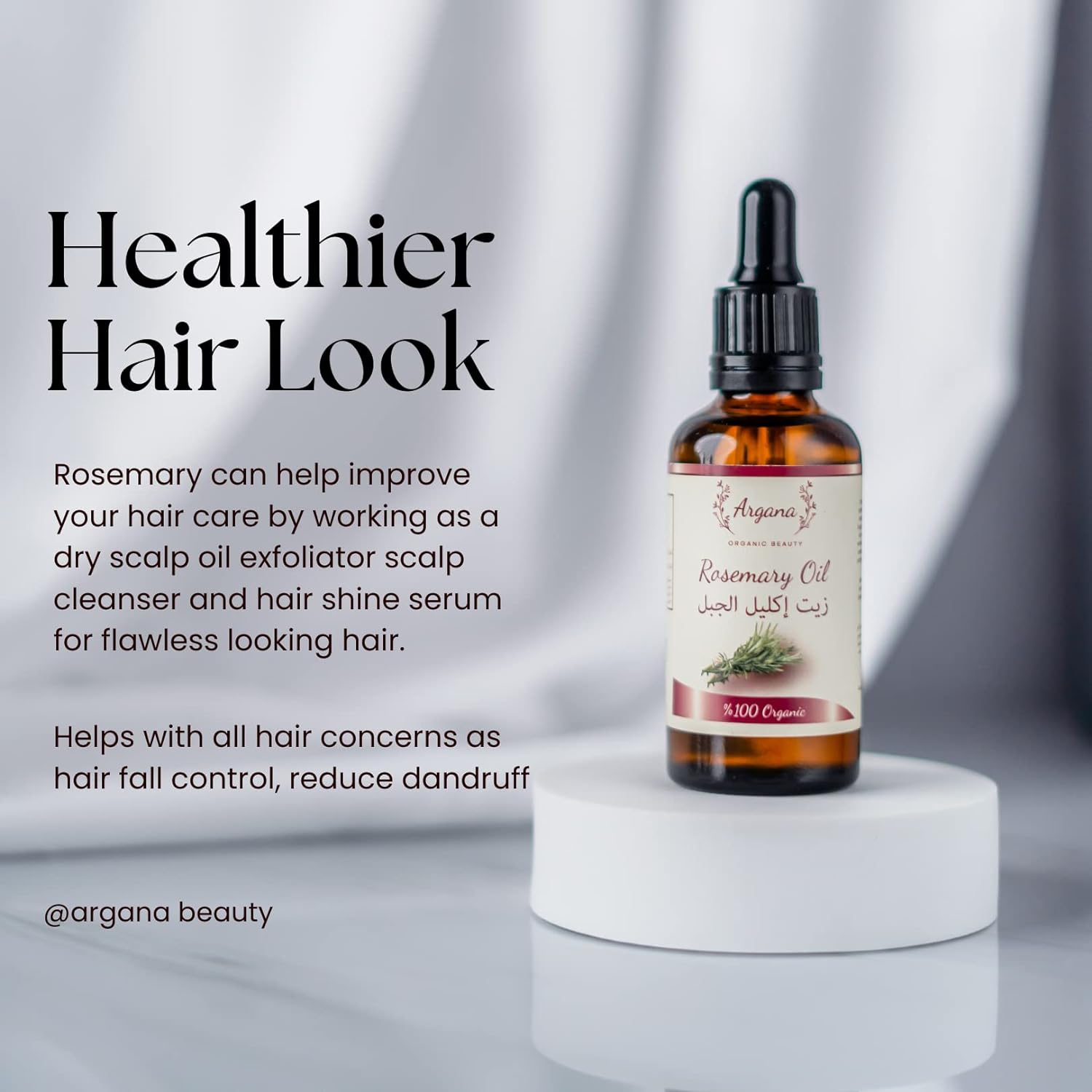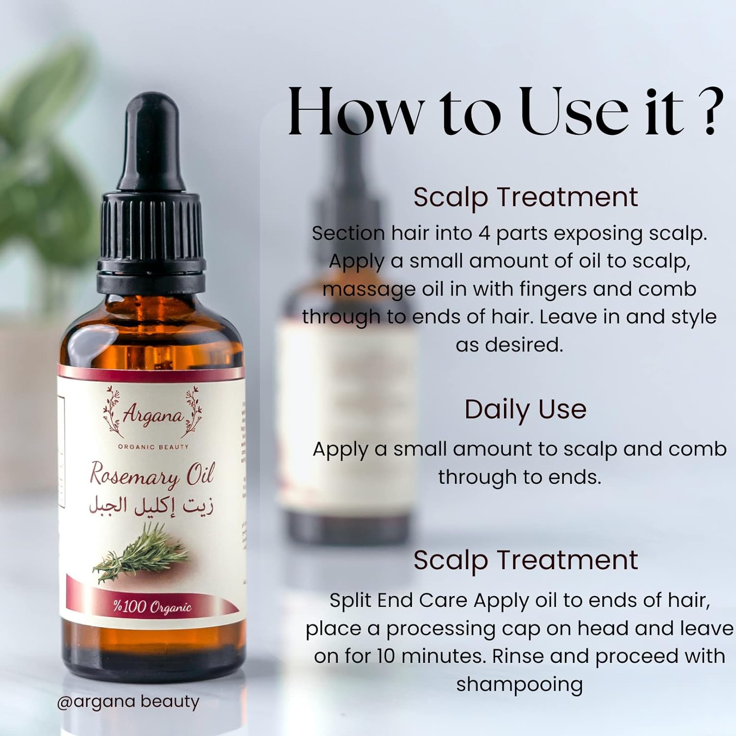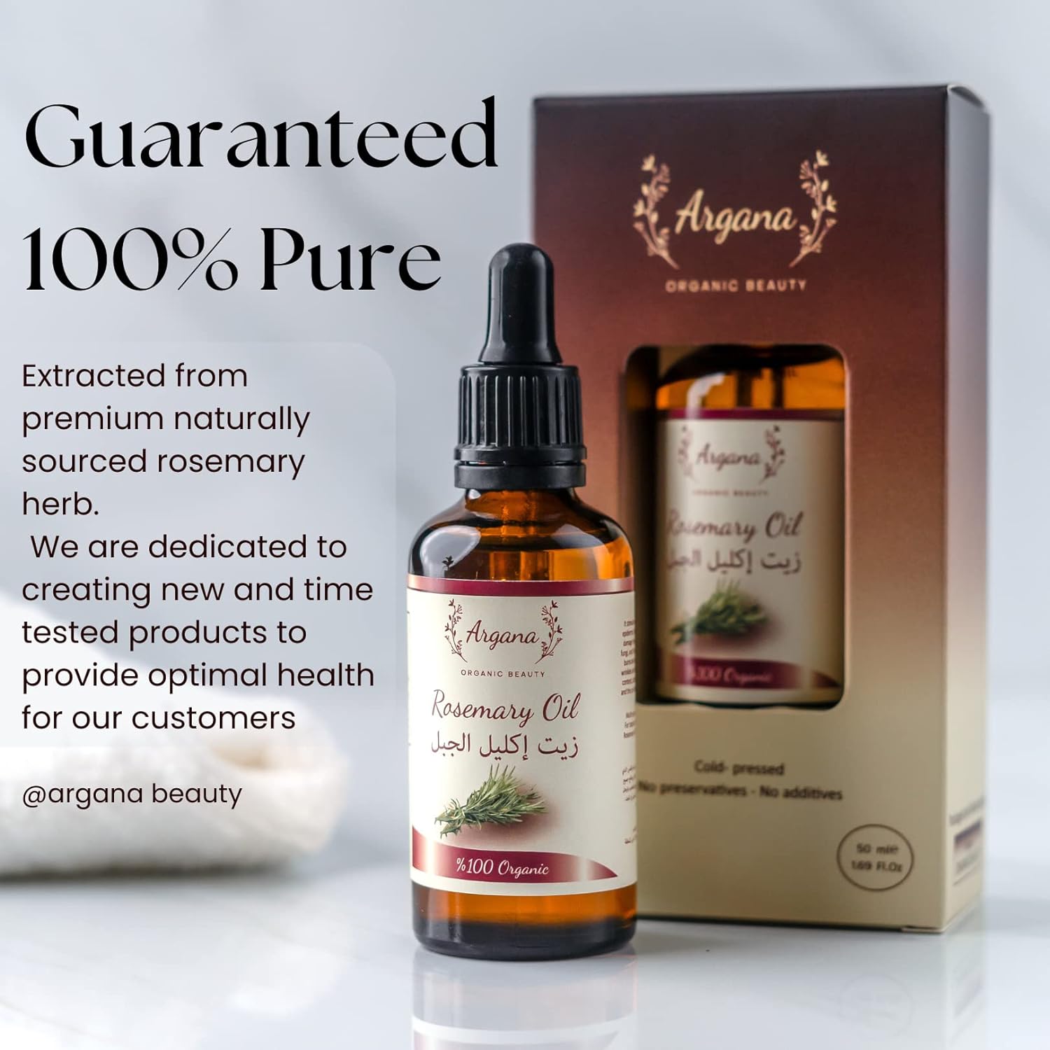 Organic Rosemary Oil for Hair Growth, Hair Roots & Eyebrows Nourishment, Scalp Health & Hairfall Treatment Pure Essential Oil Dermatology Tested 50ML / 1.69OZ