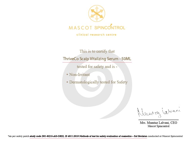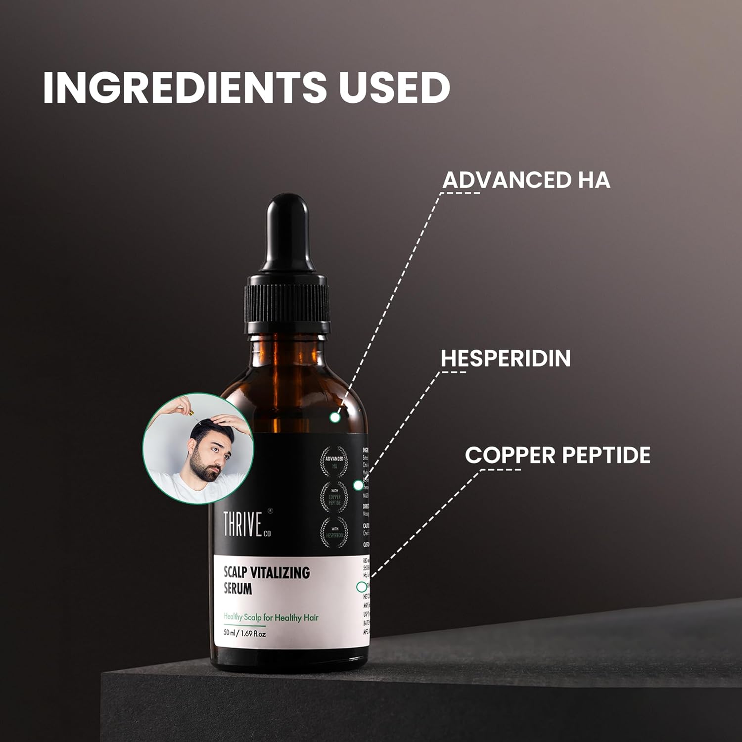 EFFECTIVE AND CLEAN HAIR SCIENCE: ThriveCo believes in bringing complete solutions based on science and advanced technology. As with all our products, Scalp Vitalizing Serum is vegan, cruelty-free, dermat tested, completely safe and effective.