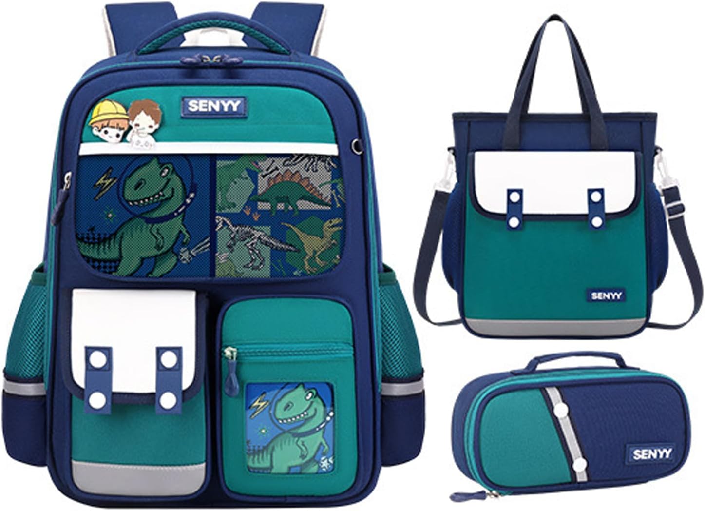 - 3-in-1 Kids Backpack Set: The bookbag's size is 10.2 x 5.5 x 15.7 inch( fit A4 folder). The size of the insulated hand bag is 7.4 x 3.7 x 9.4 inch. The size of the pencil case is 8.2 x 4.3 inch. Recommended for children from 3 to 13 years old