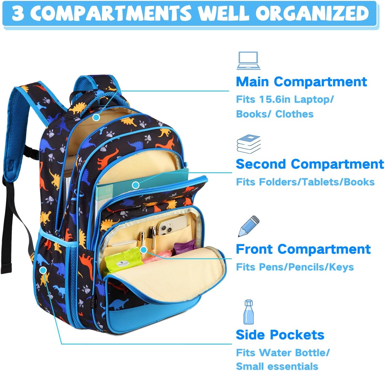 - COMFORTABLE & DURABLE:The primary school backpack is made of durable water-resistant polyester which is lightweight and easy to clean. The zippers and smooth and the stitching is reinforced for the durability. The large-size backpack is perfect for students going to school or play dates. The adjustable padded shoulder straps offer support and comfort while the adjustable chest strap stabilizes the load throughout the day's activities.