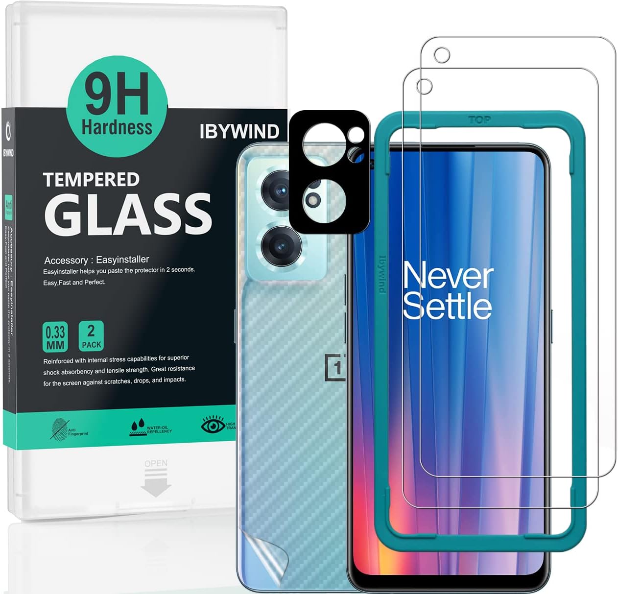 IBYWIND [Pack of 2] Screen Protector for Oneplus Nord CE 2 5G 6,43",with Metal Camera Lens Protector,Back Carbon Fiber Skin Protector,Including Easy Install Kit