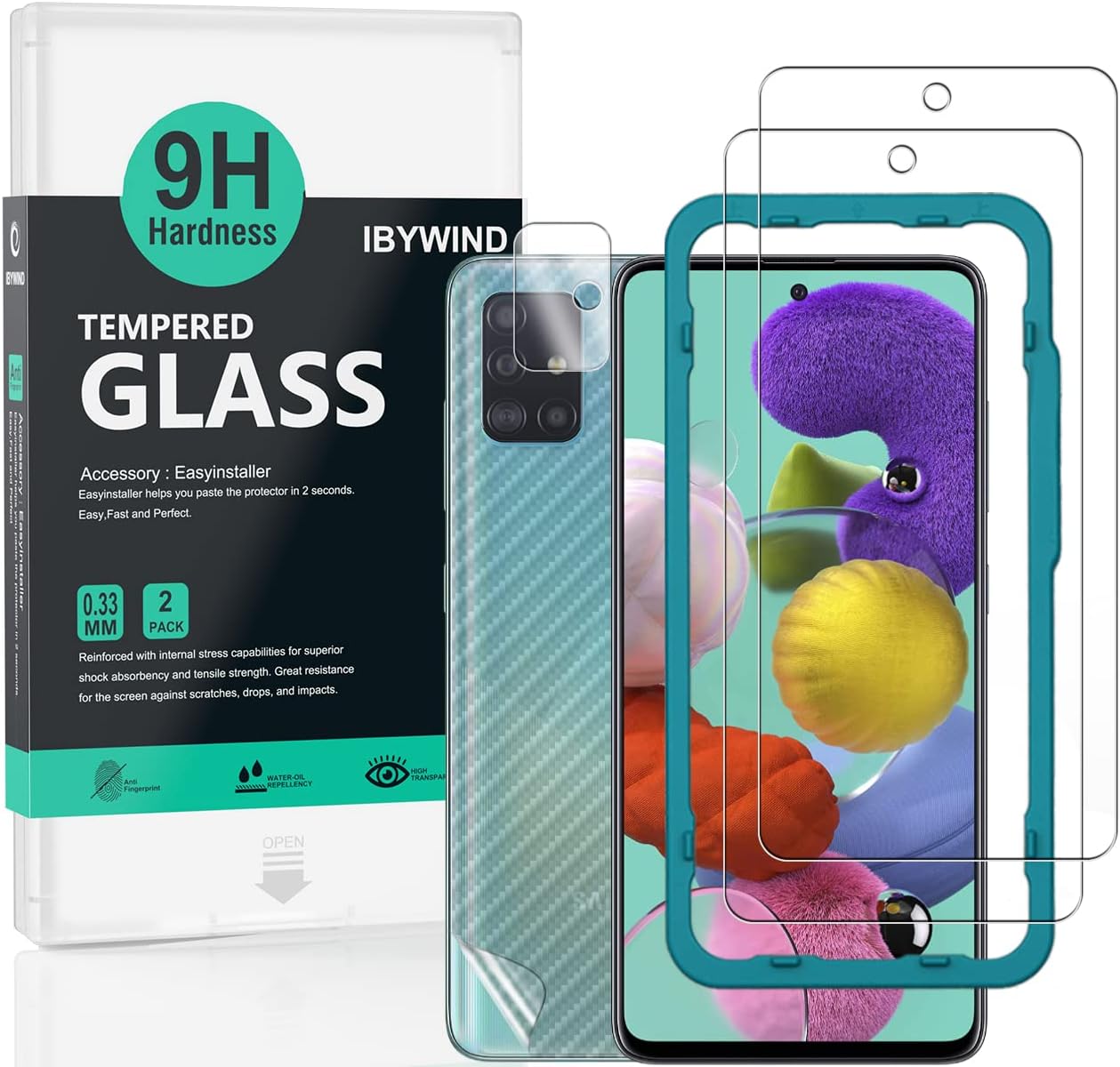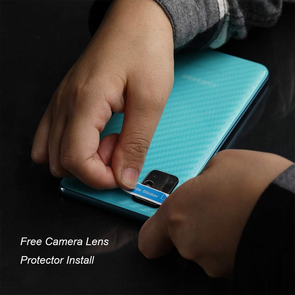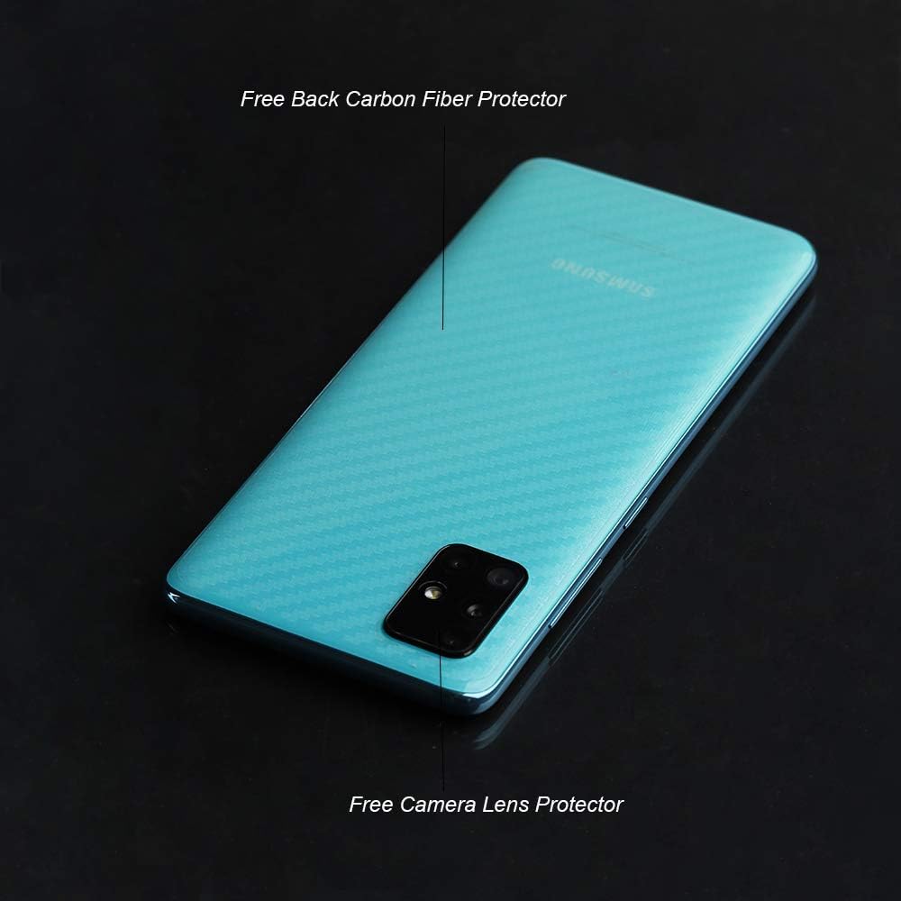 IBYWIND [Pack of 2] Screen Protector for Samsung Galaxy A51,with Camera Lens Protector,Back Carbon Fiber Skin Protector,Including Easy Install Kit