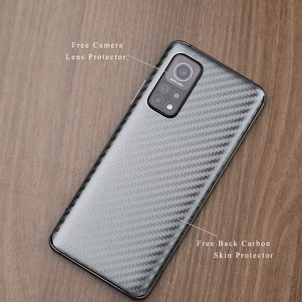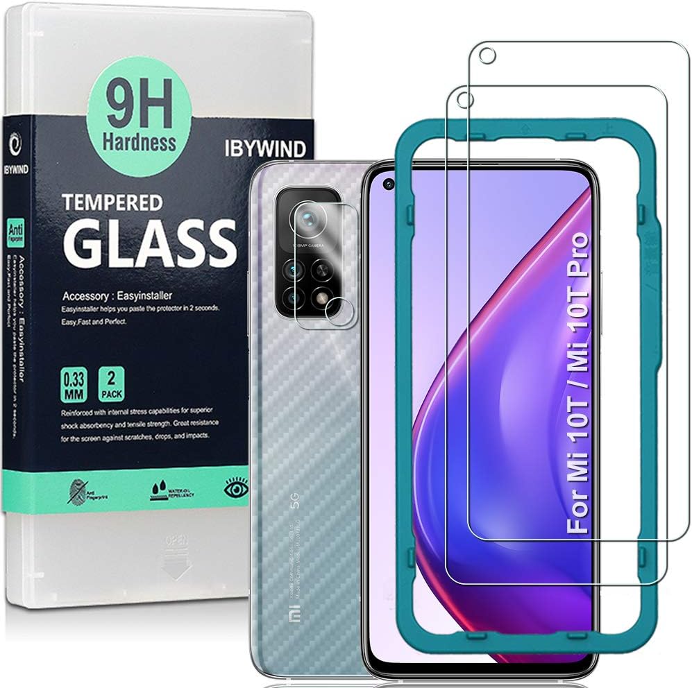 IBYWIND [Pack of 2] Screen Protector for Xiaomi Mi 10T/Mi 10T Pro 6.67",with Camera Lens Protector,Back Carbon Fiber Skin Protector,Including Easy Install Kit