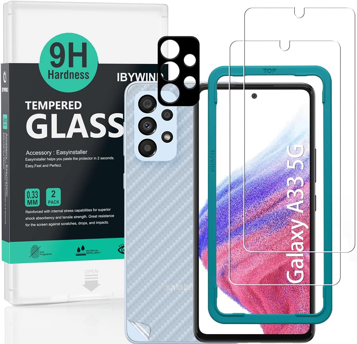 [Product Features]:IBYWIND tempered glass screen protector for Samsung Galaxy A33 5Gwith Anti-Fingerprint,Scratchproof,2.5D Arc Edge and 2Pcs Pack,Without Rainbow and White edges.