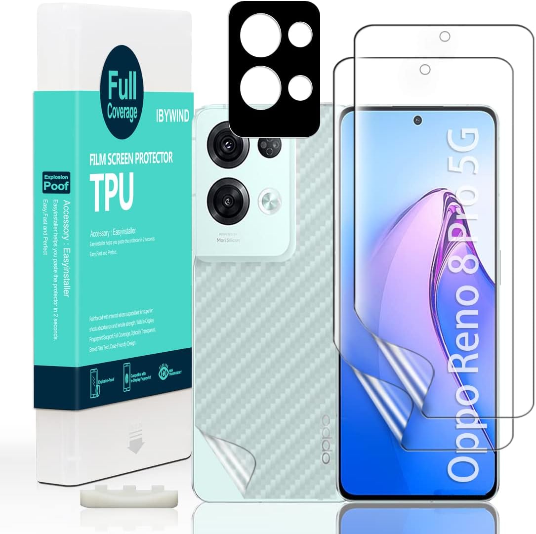 IBYWIND Screen Protector For Oppo Reno 8 Pro 5G(6.7 Inches),with 2Pcs Flexible TPU Film,1Pc Camera Lens Protector,1Pc Backing Carbon Fiber Film[Fingerprint Reader,Easy to install]