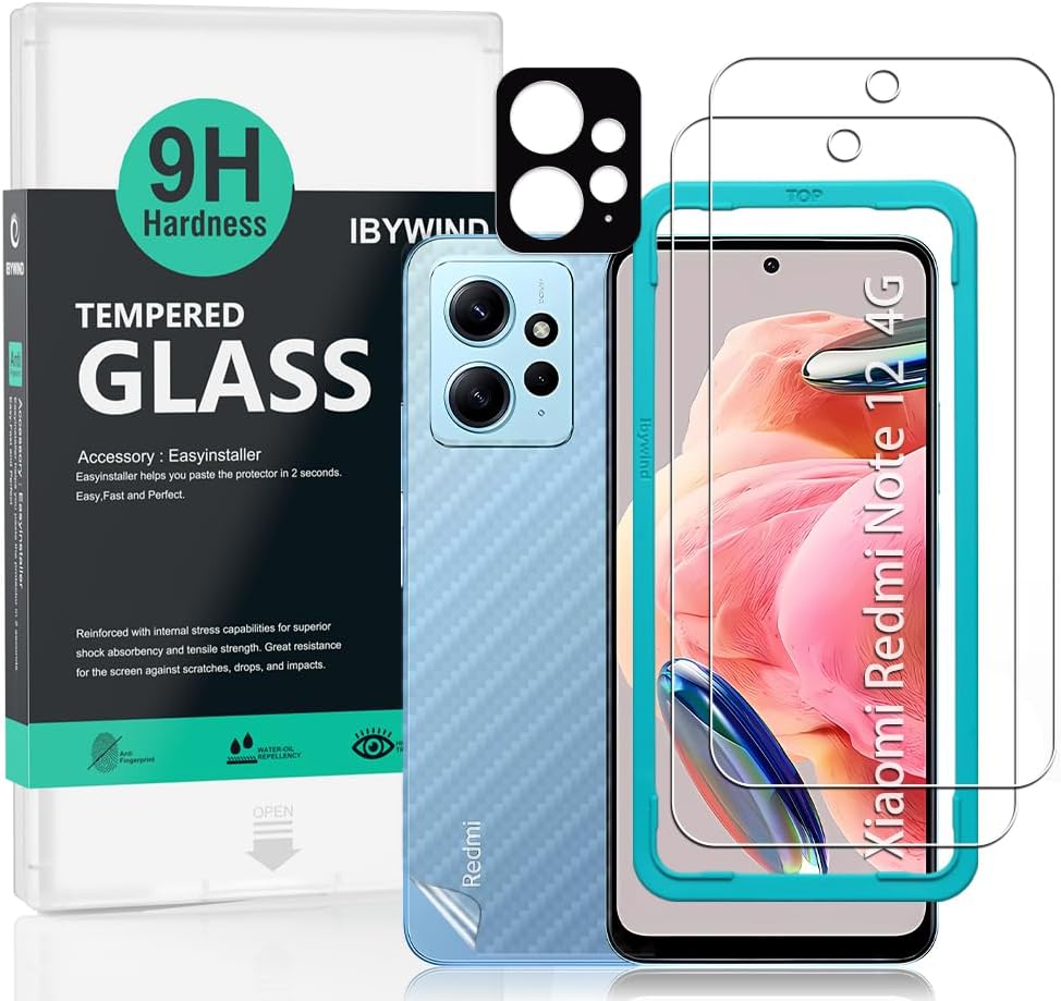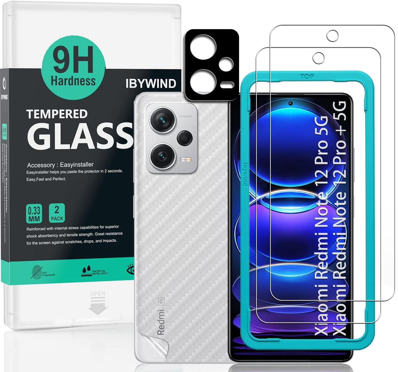 IBYWIND Screen Protector For Redmi Note 12 Pro 5G/Redmi Note 12 Pro+ 5G(6.67"),with 2Pcs Tempered Glass,1Pc Camera Len Protector,1Pc Backing Carbon Fiber Film[Fingerprint Reader,Easy to install]