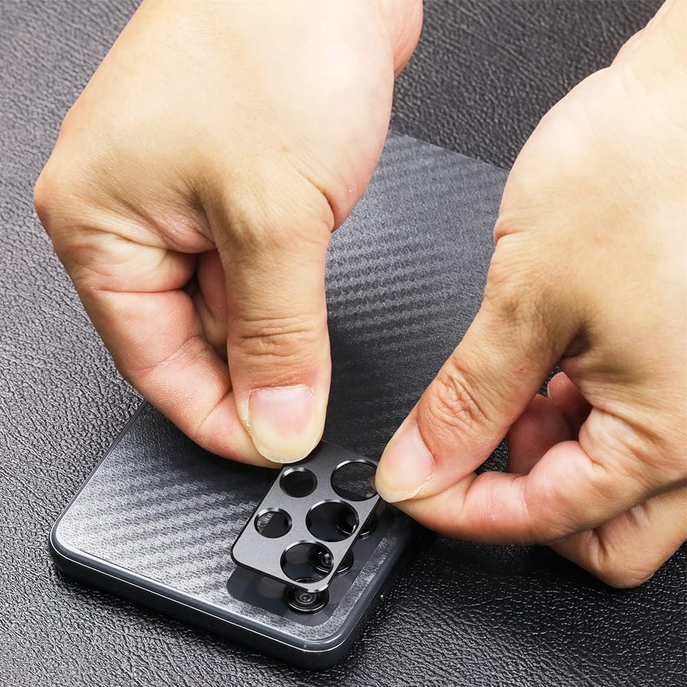 ★[Package Including]2Pcs Tempered Glass screen protector;1Pc Metal Camera Lens Protector("Hollow out" design);1Pc Back Carbon Fiber Skin Protector(transparet color);1Pc Easy Installation Frame; 2packs installation accessory kits,1Pc Installation Instructions