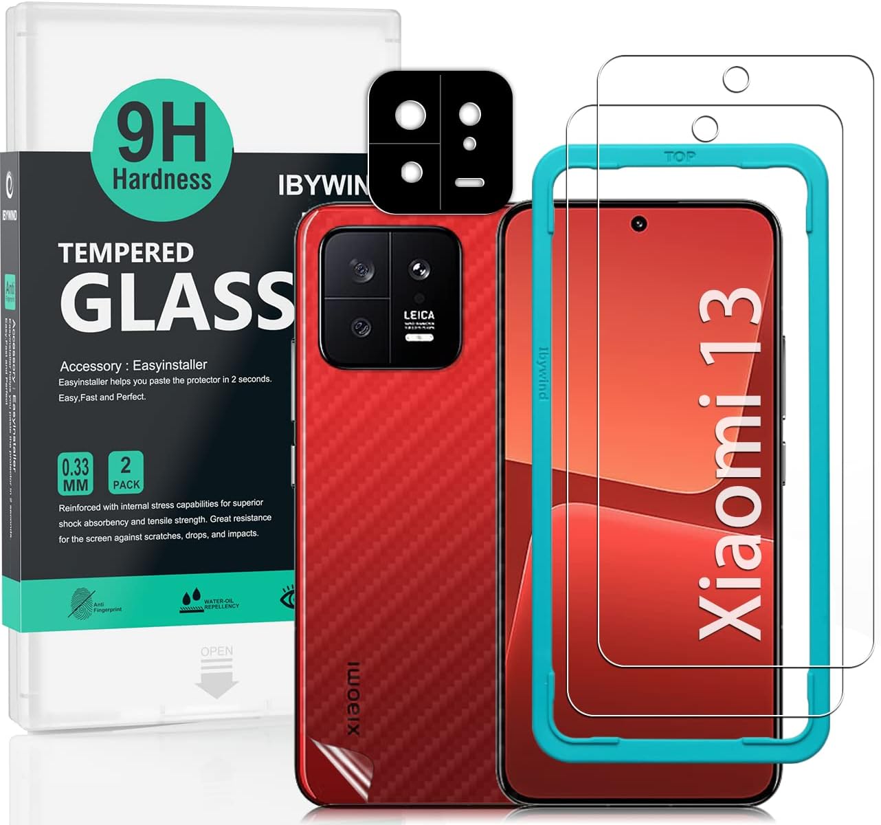 IBYWIND Screen Protector For Xiaomi 13 5G 6.36"(Not For Xiaomi 13 Ultra/Xiaomi 13 Pro/Xiaomi 13 Lite),with 2Pcs Tempered Glass,1 Pc Camera Len Protector,1 Pc Back Carbon Fiber Film,Easy to install