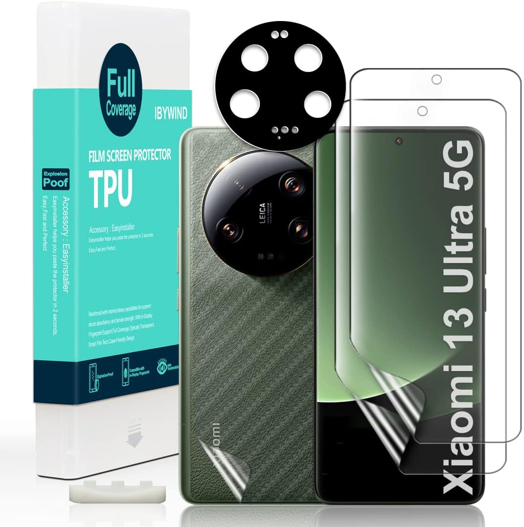 IBYWIND Screen Protector For Xiaomi 13 Ultra 5G,with 2Pcs Flexible TPU Film,1Pc Camera Lens Protector,1Pc Backing Carbon Fiber Film[Fingerprint Reader,Easy to install]