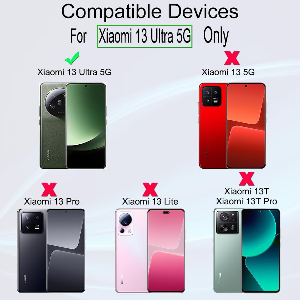 ★[Only Works] The screen protector(Not Glass,is Hydrogel) and camera lens protector are only compatible with Xiaomi 13 Ultra 5G. Not for Xiaomi 13 5G 6.36"/Xiaomi 13 Pro 5G 6.73"/Xiaomi 13 Lite 5G 6.55" other model, Please check your phone model before buying this TPU screen protector.
