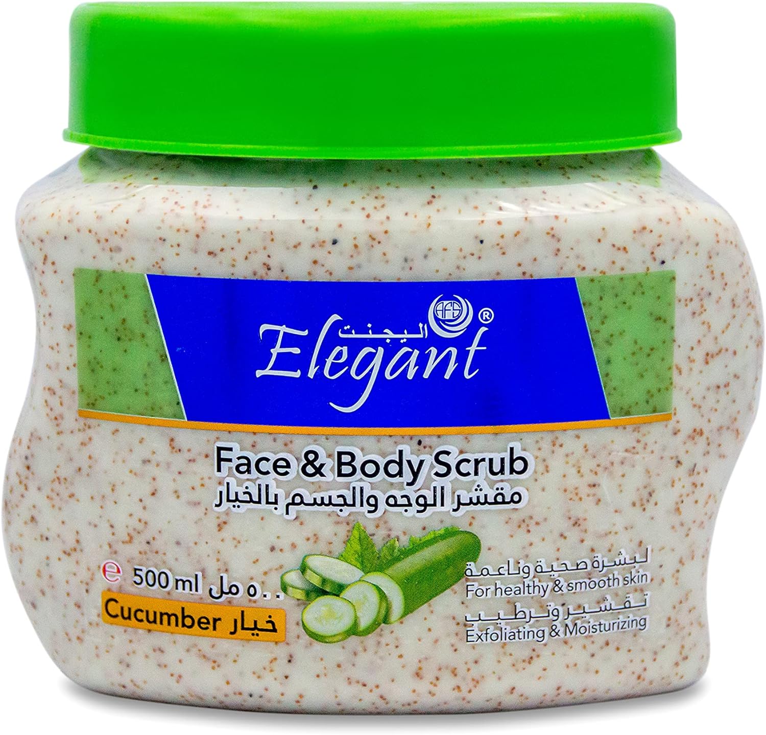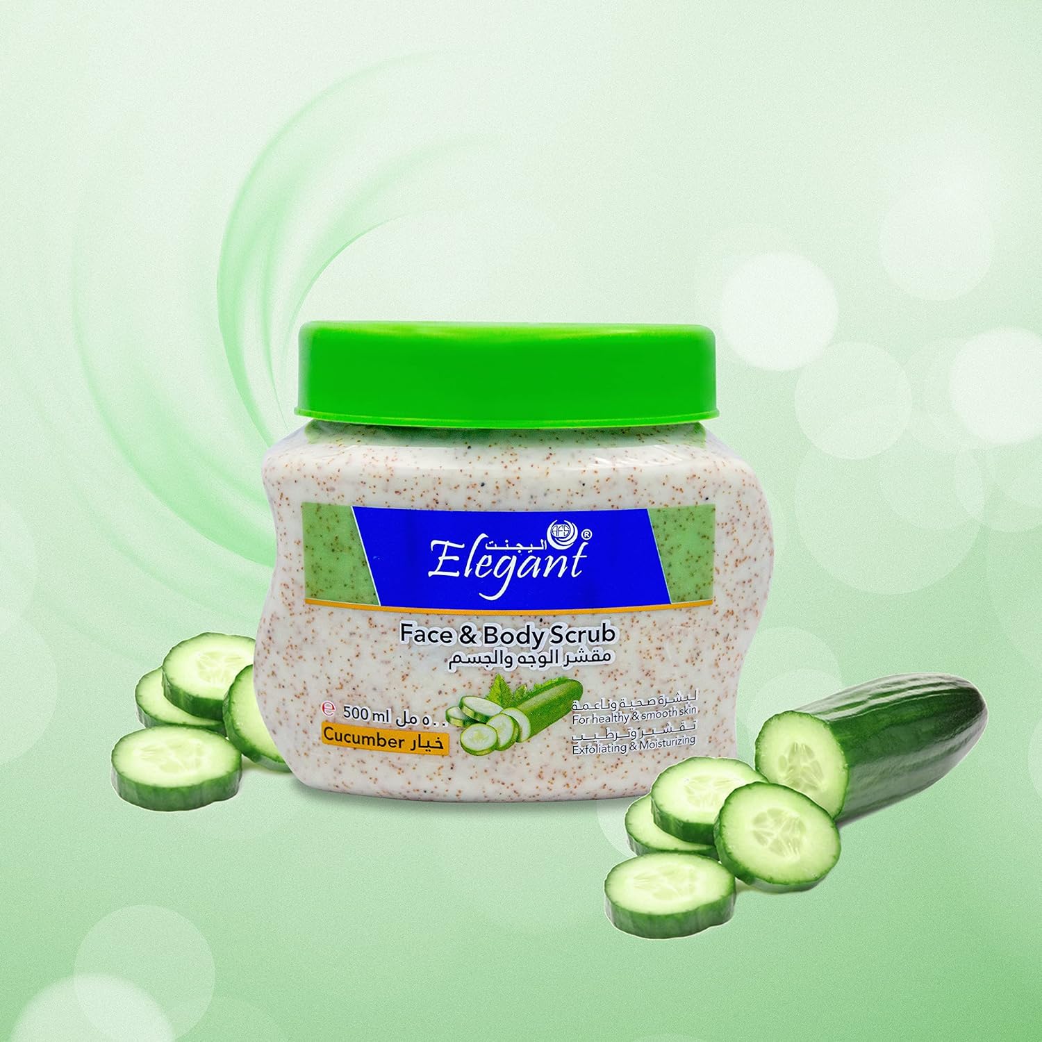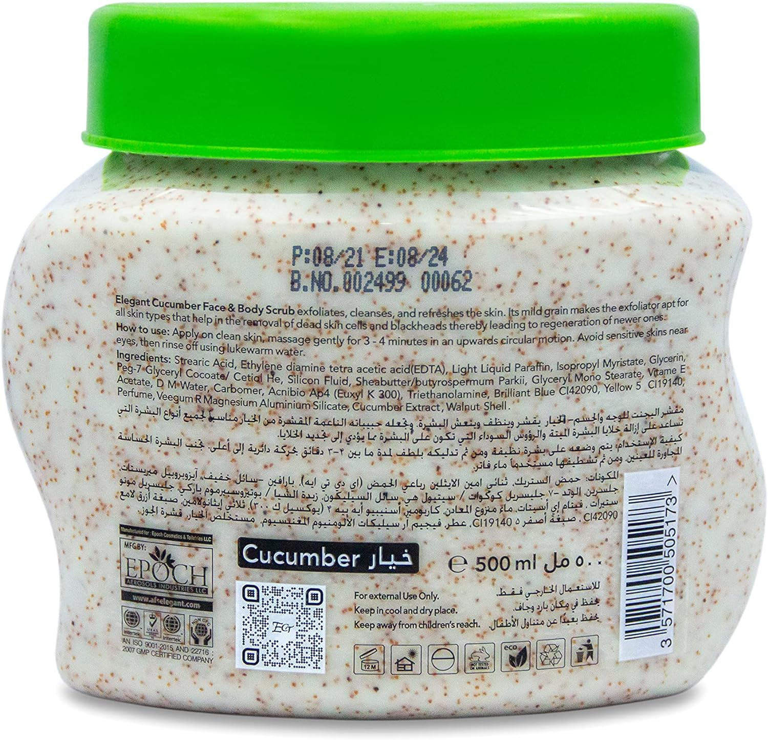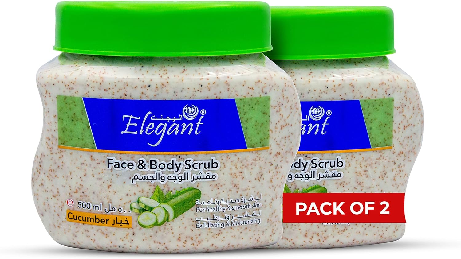 Elegant Cool Cucumber FACE & BODY SCRUB | 500 ML | Twin Pack | Deep Cleaning & Exfoliating Scrub, Facial Exfoliant For Healthy & Smooth Skin, Natural Extracts For Moisturizing