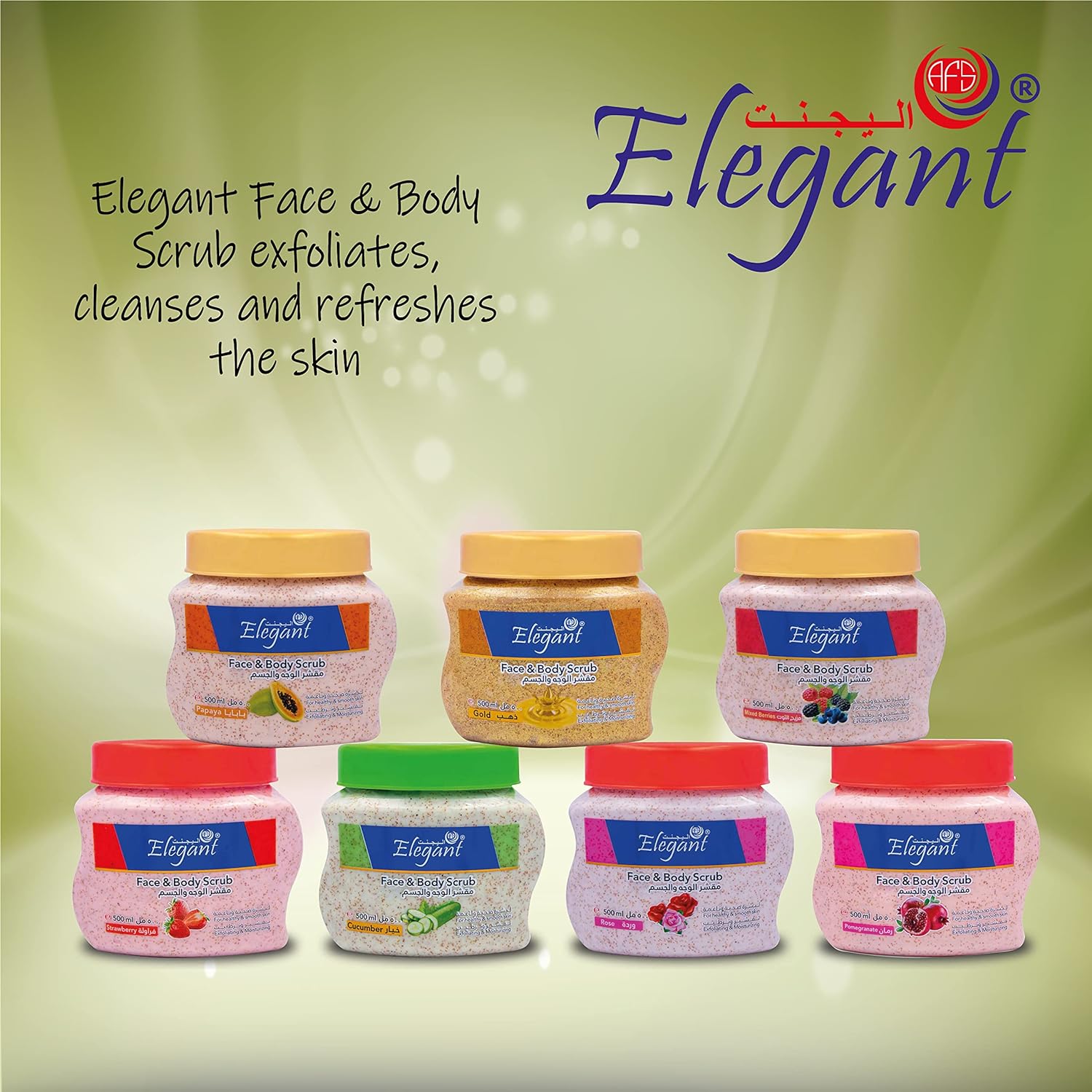 NATURAL INGREDIENTS: Elegant Face & Body Scrubs are made with Natural Ingredients to make it both Safe and Effective on your Skin. Wake your senses with the amazing fragrance offered by Elegant.