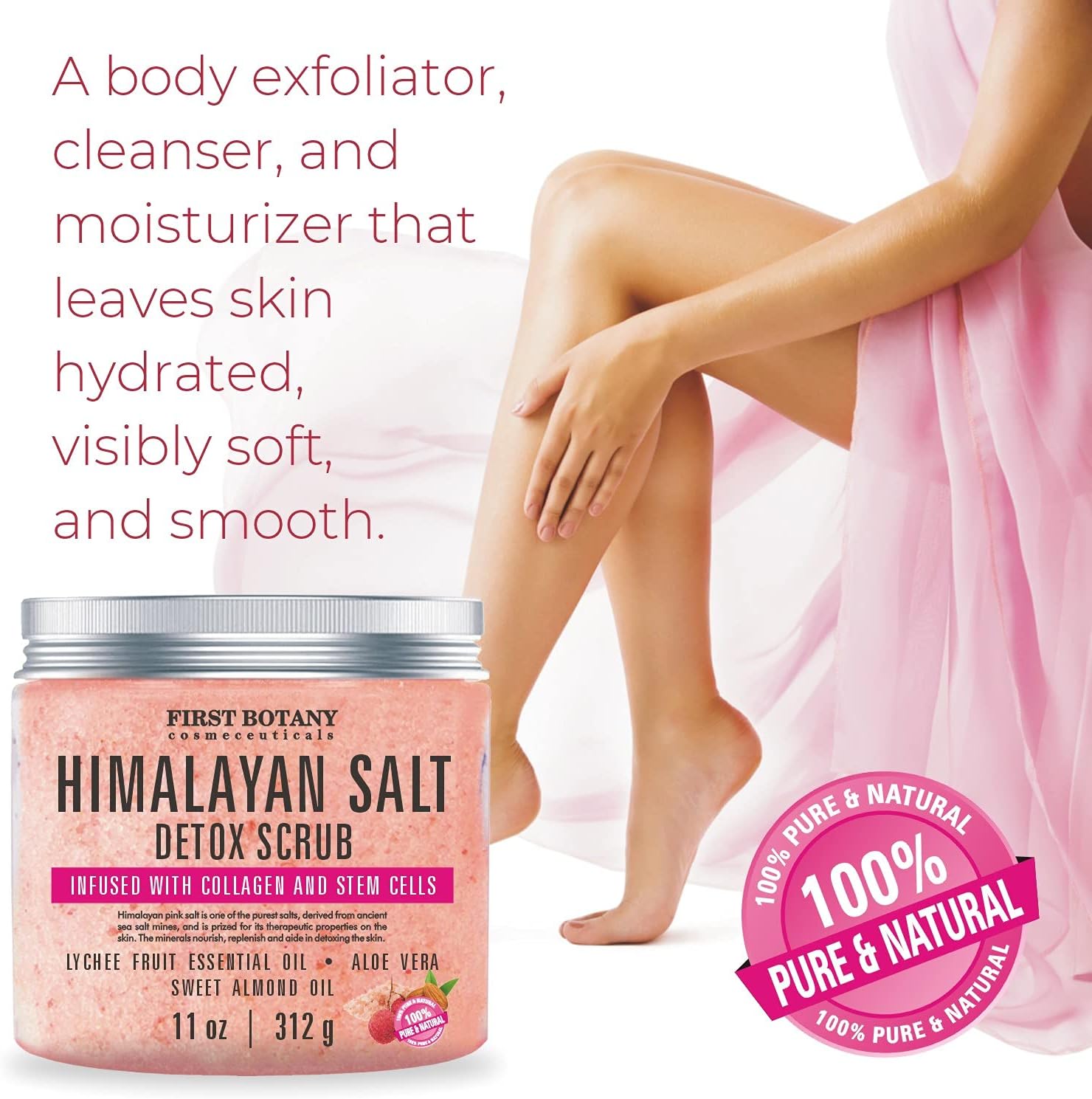 THE BEST EXFOLIATING EXPERIENCE: First Botany Himalayan Salt Body Scrub / Facial Exfoliator serves as a body scrub, facial scrub, hand scrub or foot scrub! Himalayan Sweet Almond & Lychee Crystal Salt Body Wash /Scrub comes with a high quality Himalayan salt with its maximum nutrient profile including calcium, magnesium, potassium, copper & iron; no harmful chemicals.