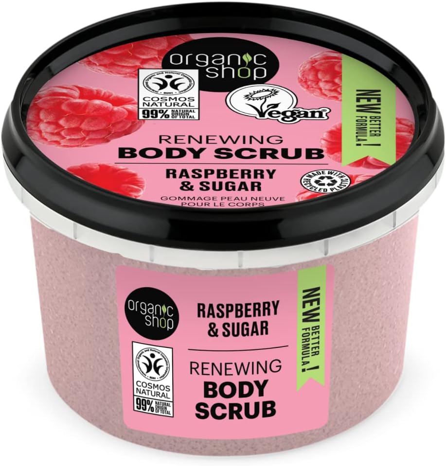 Fruity, aromatic body scrub gently exfoliates and renews skin