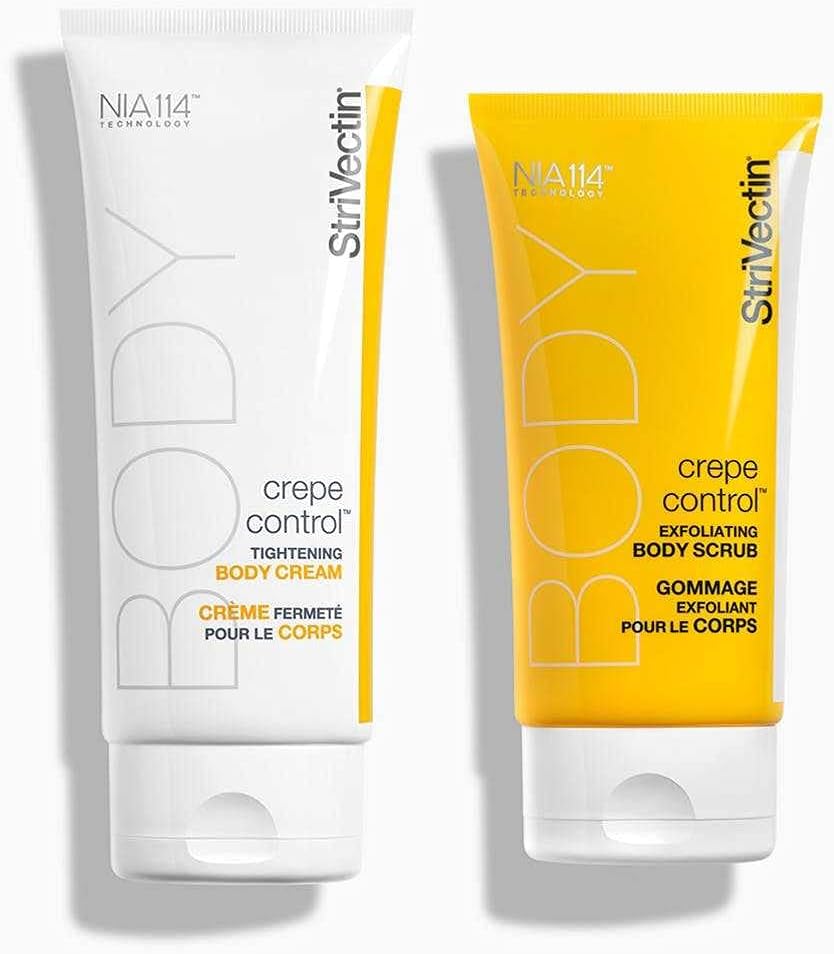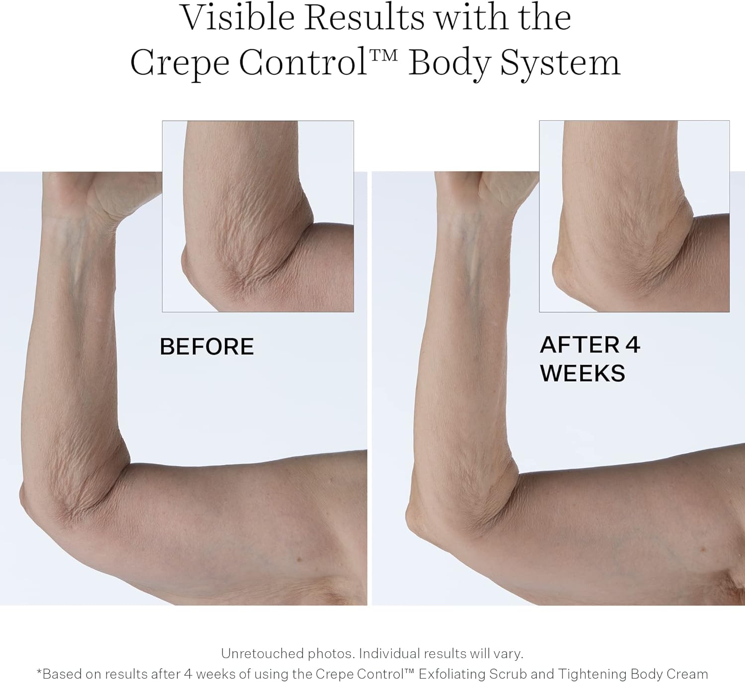 Take control over crepey skin. More than a body moisturizer, this transforming treatment is packed with potent peptides plus lifting and brightening agents to visibly tighten and even skin tone. Lightweight yet deeply moisturizing, this firming formula restores elasticity and resilience to thin, crepey skin. When paired with Crepe Control Exfoliating Body Scrub, it’s the ultimate system for youthful-looking results.IngredientsAqua (Water, Eau), Caprylic/Capric Triglyceride, Butyrospermum Parkii (Shea) Butter, Ethylhexyl Stearoyl Polyhydroxystearate, Glycerin, Cetearyl Alcohol, Trimethylolpropane Tricaprylate/ Tricaprate, Stearyl Alcohol, Propanediol, Coconut Alkanes, Glyceryl Stearate, Dimethicone, Myristyl Nicotinate, Caffeine, Bis-Stearyl Dimethicone, Palmitoyl Tripeptide-38, Simmondsia Chinensis (Jojoba) Seed Extract, Tetrahydrodiferuloylmethane, Astrocaryum Murumuru Seed Butter, Theobroma Grandiflorum Seed Butter, Pyrus Malus (Apple ) Seed Oil, Caesalpinia Spinosa Fruit Extract, Vaccinium Macrocarpon (Cranberry) Seed Oil, Kappaphycus Alvarezii Extract, Prunus Avium (Sweet Cherry) Seed Oil, Rosmarinus Officinalis (Rosemary) Leaf Extract, Actinidia Chinensis (Kiwi) Seed Oil, Oryza Sativa (Rice) Bran Extract, Rubus Fruticosus (Blackberry) Seed Oil, Helianthus Annuus (Sunflower) Extract, Hippophae Rhamnoides Fruit Oil, Aloe Barbadensis Leaf Juice Powder, Punica Granatum Seed Oil, Bacillus/Sea Salt Ferment Filtrate, Sodium Hyaluronate, Sodium PCA, Lactic Acid, PEG-40 Stearate, Parfum (Fragrance), Adenosine, 1,2-Hexanediol, Sodium Acrylate/ Sodium Acryloyldimethyl Taurate Copolymer, Coco-Caprylate/Caprate, Proline, Polysilicone-11, Caprylyl/Capryl Glucoside, Polyisobutene, Hydroxyproline, Ceteareth-20, Hydroxypropyl Cyclodextrin, Panthenol, Caprylyl Glycol, Aminomethyl Propanol, Tocopherol, Sorbitan Oleate, Xanthan Gum, Caprylhydroxamic Acid, Phenoxyethanol, Ethylhexylglycerin, Citric Acid, Limonene, Citral, Linalool ILN 10032.