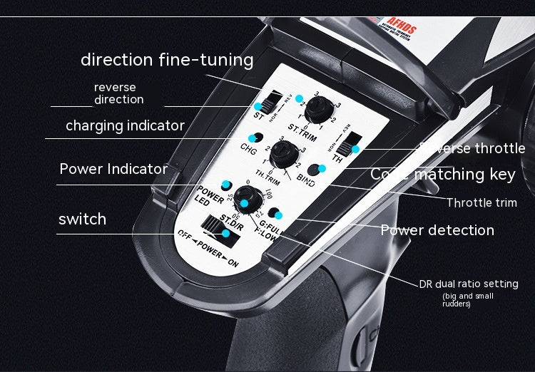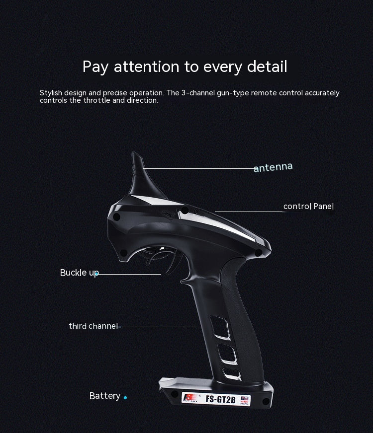 FS-GT2B transmitter * 1 FS-GR3E receiver * 1 Code line * 1 Antenna sleeve * 1 Instruction CD * 1 Rubber handle * 1 Data cable * 1 800MAH lithium battery * 1