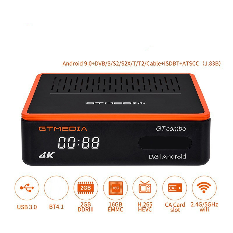 1. Android 9.0 TV BOX+DVB-S/S2/S2X,DVB+T/T2/Cable/ATSC-C(J.83B)/ISDBT, AVS+HEVC main 10 profile(10bit),AUTO BISS,T2MI,GTFeeds,YUV422,Gtshare