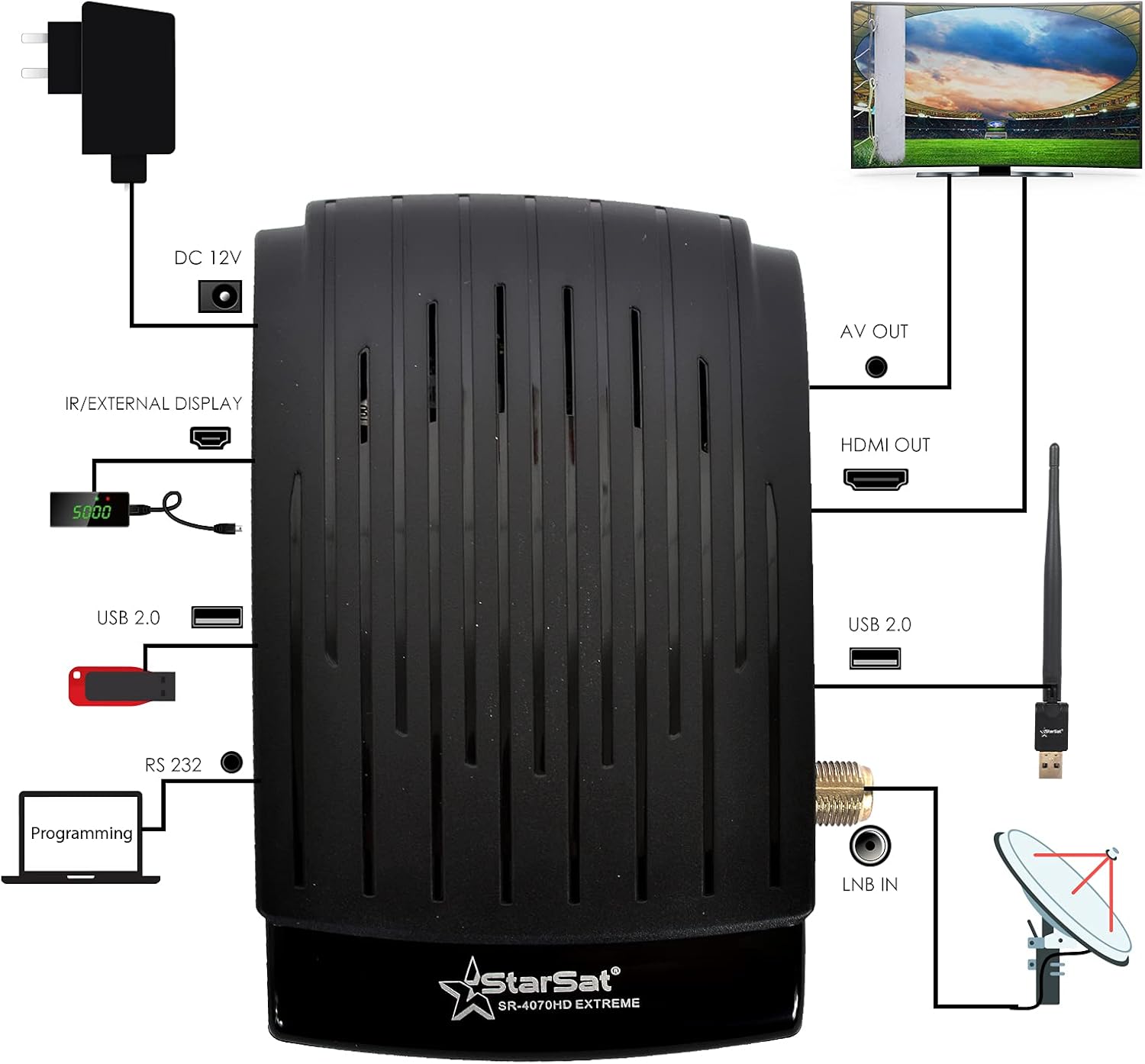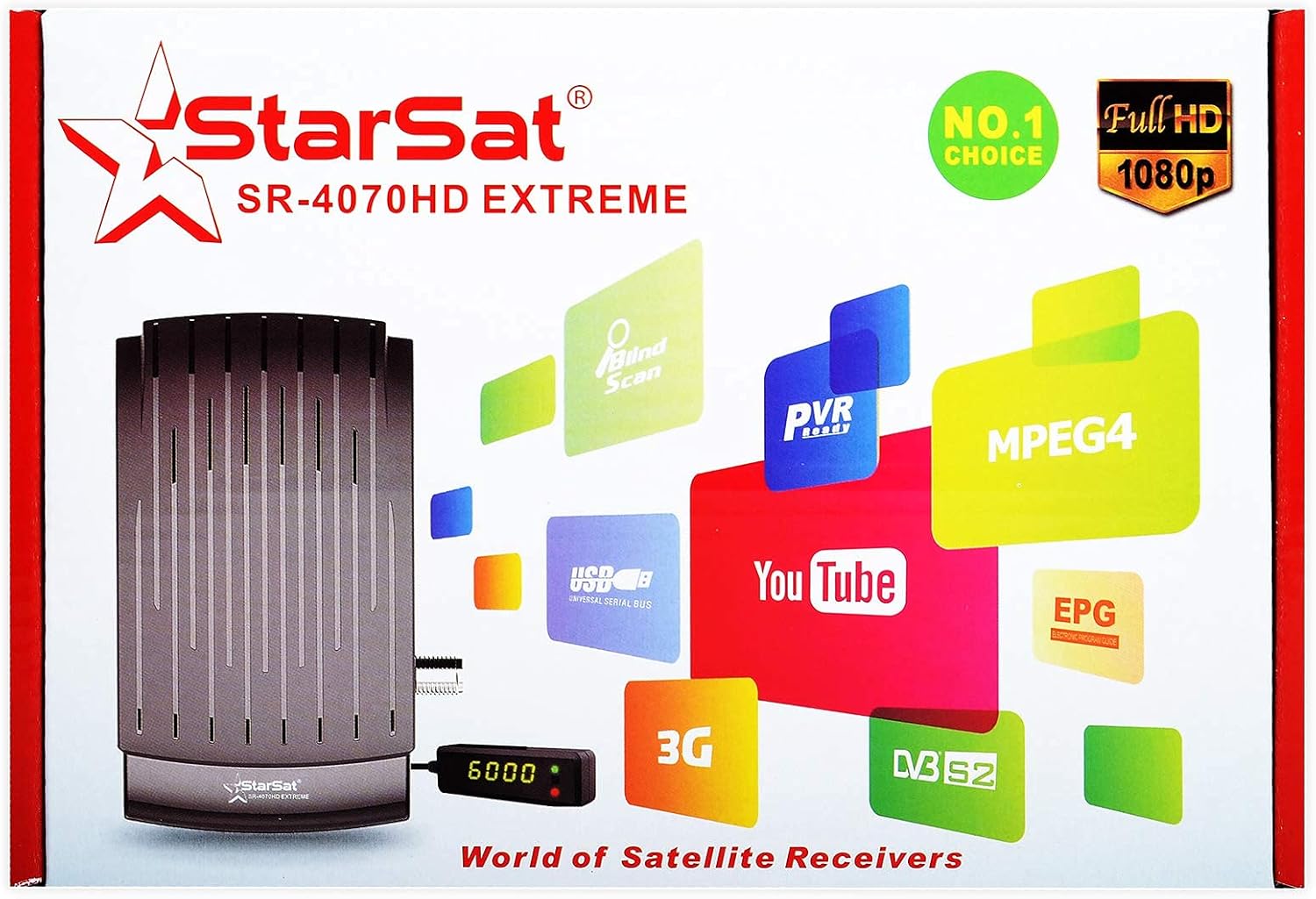 Star Sat SR-4070HD Full HD 2xUSB, HDMI, EPG, MPEG4, Blind Scan, YouTube, PVR, DVBS2,3G and WiFi Supported Receiver