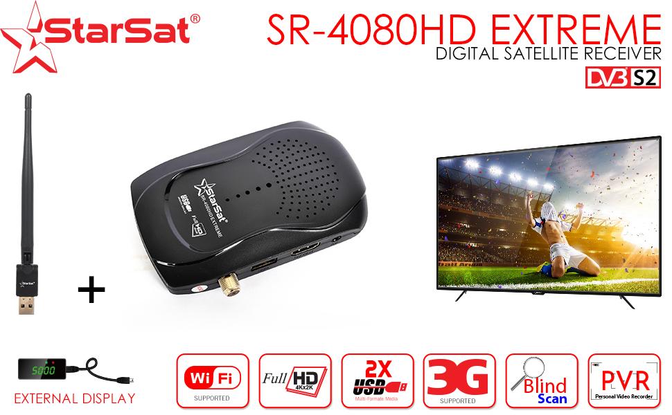 Star Sat SR-4080HD Extreme Full HD 4Kx2K, 2xUSB, HDMI, EPG, MPEG4, Blind Scan, YouTube, PVR, DVBS2, 3G & WiFi included