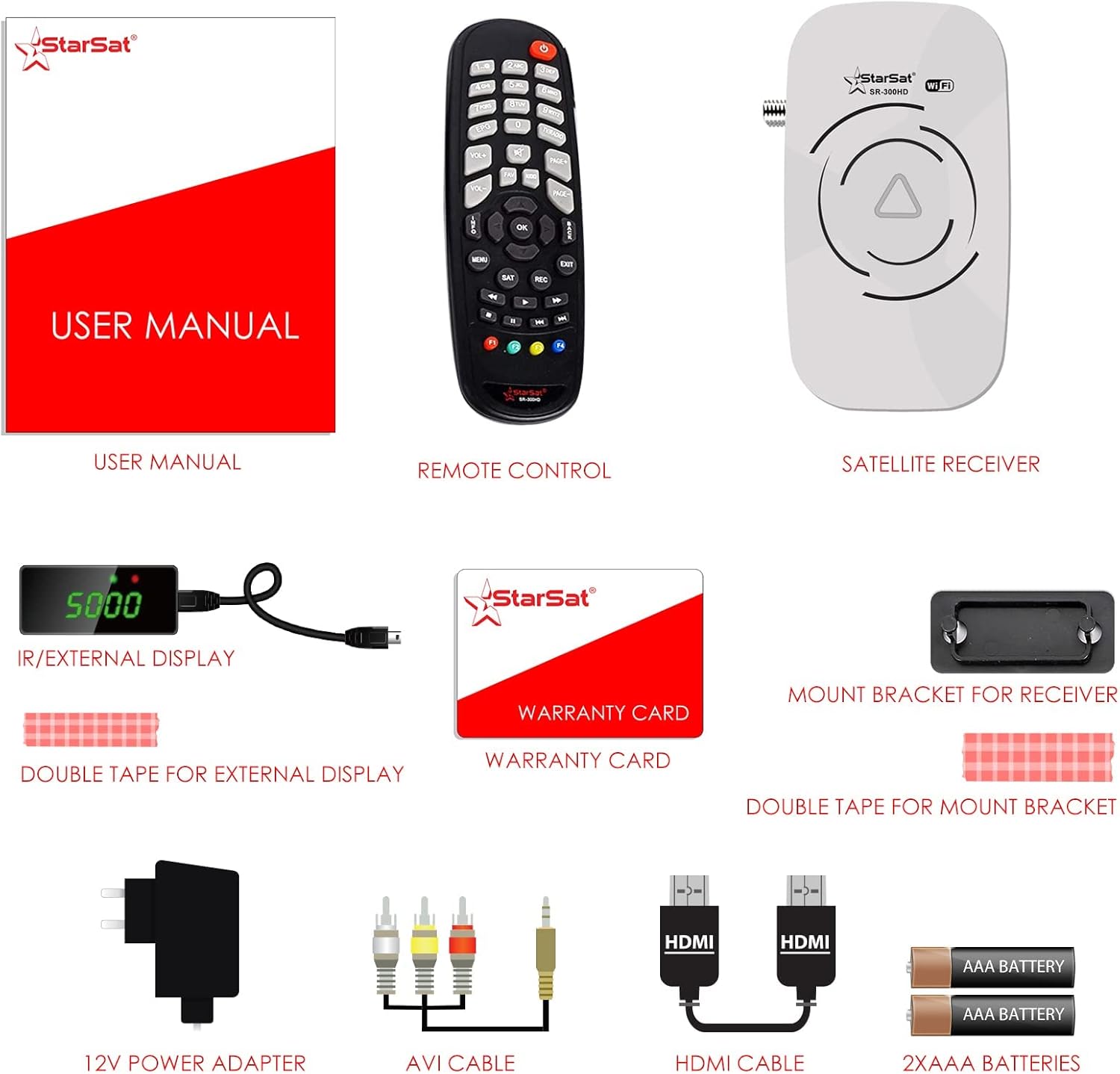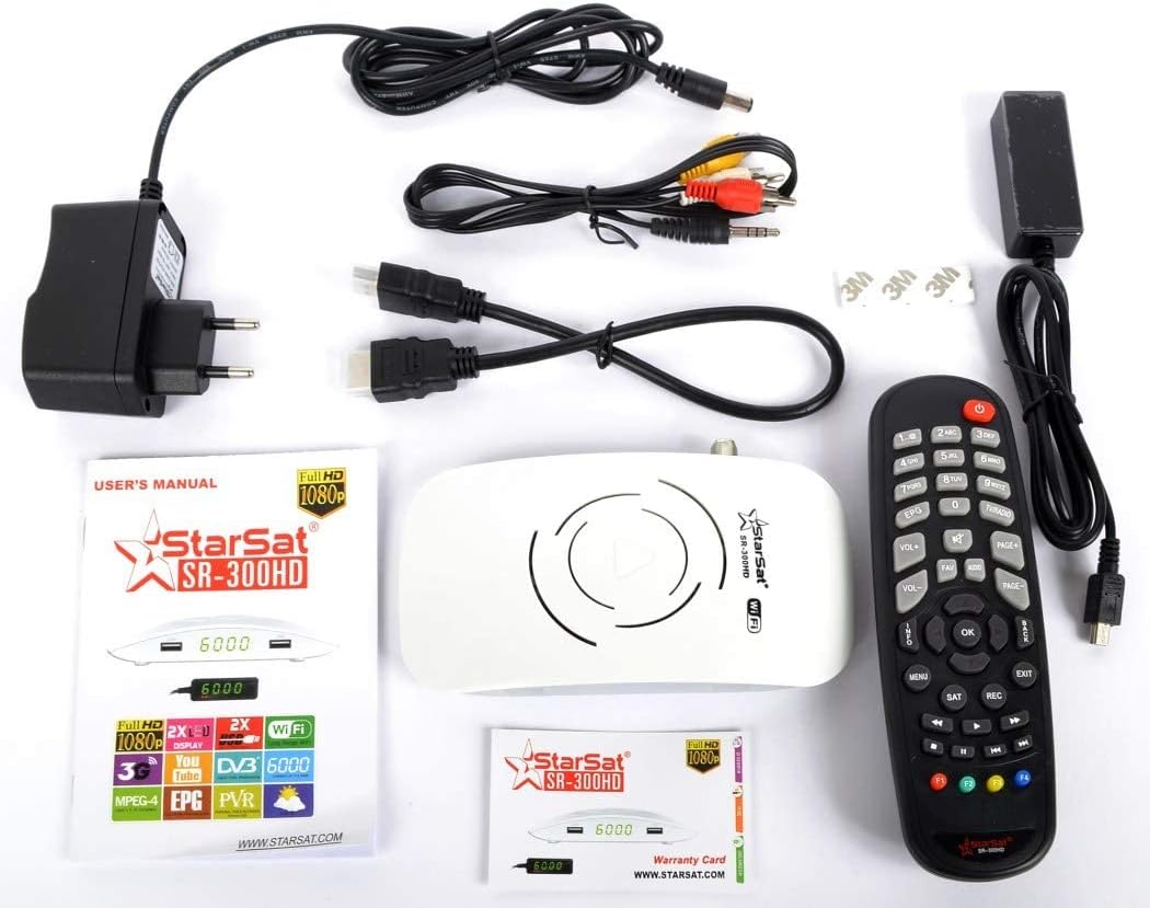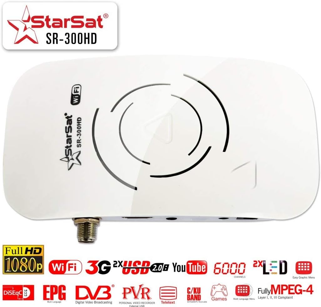 STARSAT SR-300HD Full HD 1080P, 6000 Channels, 2xLED Display, 2x USB, Long Range 300HD (White)