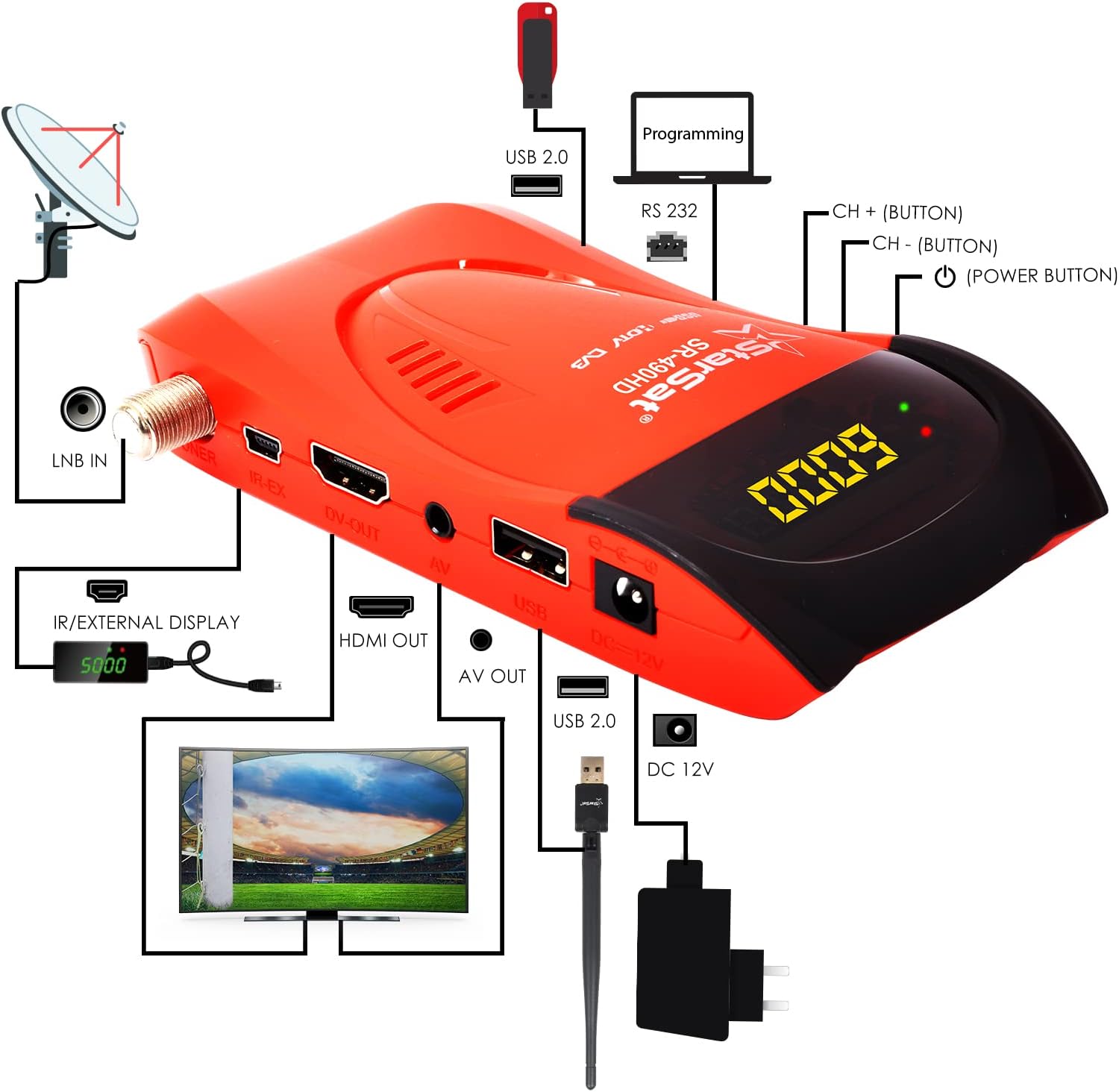 StarSat SR-490HD Full HD DVBS2 Satellite Receiver, 2xUSB, HDMI, 6000 Channels, EPG, MPEG4, Blind Scan, YouTube, PVR, WiFi Supported (WiFi device not include)