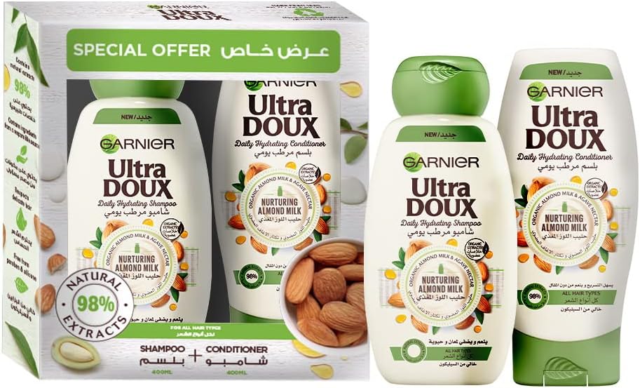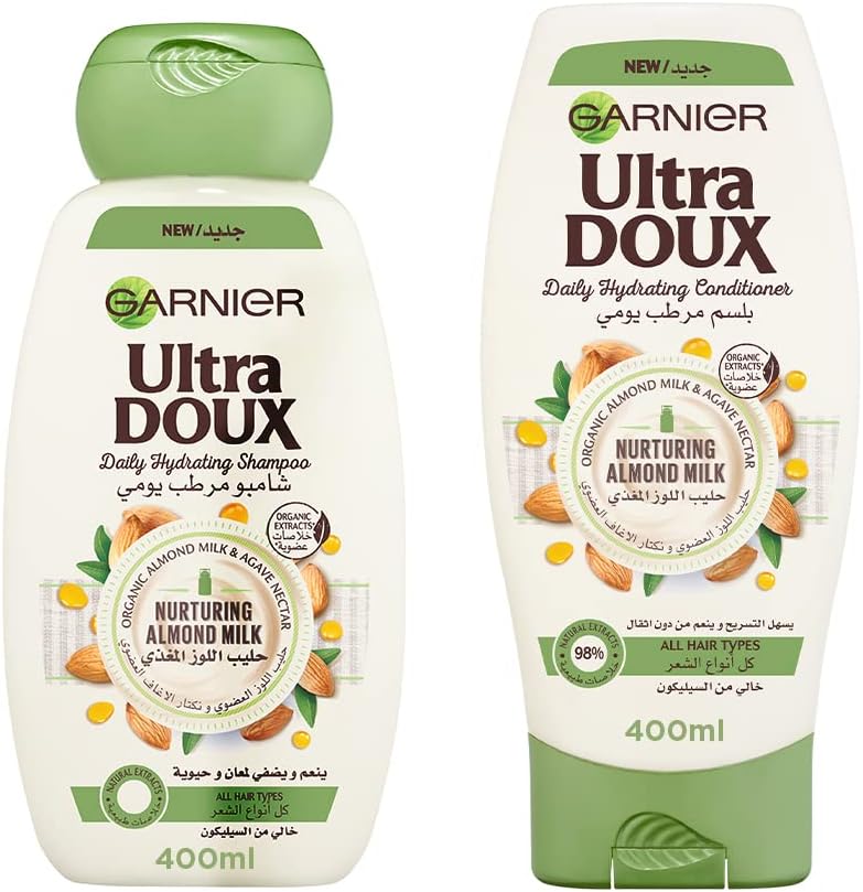 Garnier Ultra Doux Almond Milk Shampoo, 400 ml with Almond Milk Conditioner, 400 ml - Pack of 1