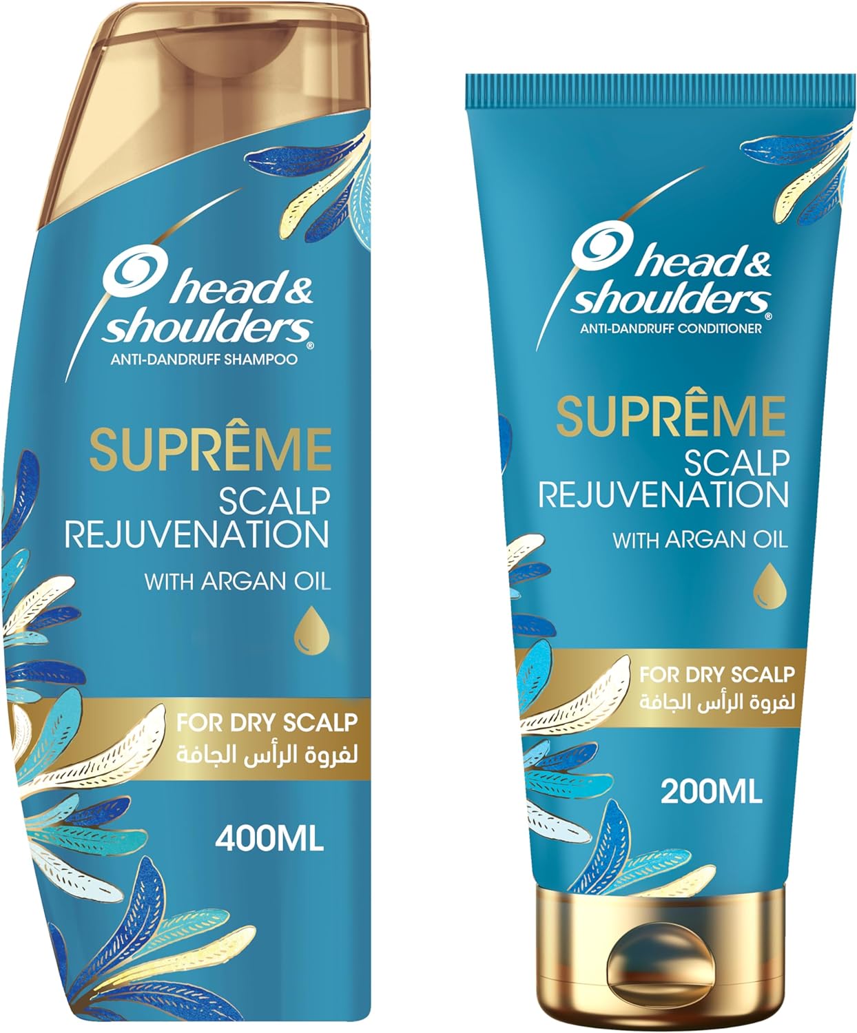 Head & Shoulders Supreme Anti-Dandruff Shampoo With Argan Oil For Dry Scalp Rejuvenation, 400ml + Conditioner 200ml