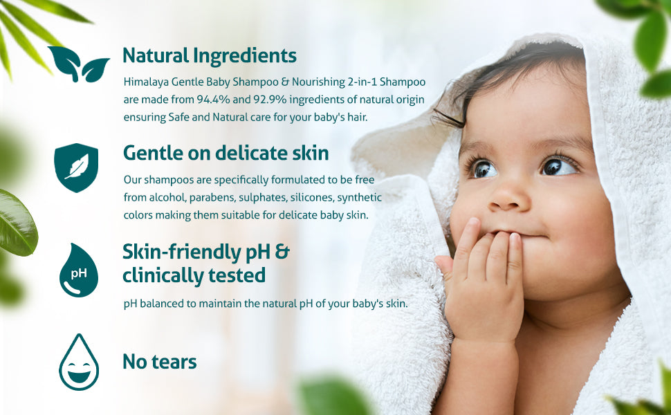 Himalaya’s 2in1 Nourishing Shampoo and Conditioner gently cleanses and deeply moisturizes, making it perfectly suitable for your baby’s dry and delicate scalp and hair.