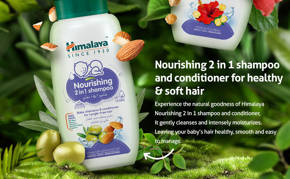 Himalaya No Tears 2in1 Nourishing Baby Shampoo & Conditioner with Olive & Almond Oils for Deeply Moisturized and Tangle-Free Hair, pH Balanced, Free from Alcohol, Parabens & Sulphates- 400ml