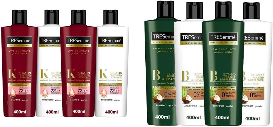 TRESemme Keratin Smooth and Straight Shampoo with Argan Oil, 400ml (Pack of 2) + TRESemme Keratin Smooth and Straight Conditioner, 400ml (Pack of 2)