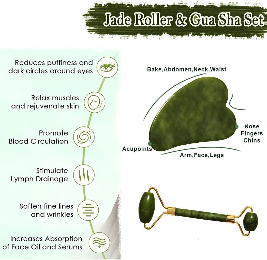 Al Mishqaat Jade Roller & Gua Sha Set Facial Massage Tools Beauty Roller Skin Care kit
