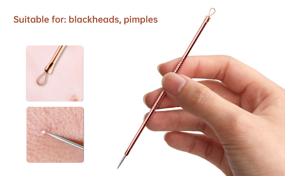 [Wide Application] The different sizes and shapes of acne tools make it easier to get into those places like your ear around or forehead, nose, and T-zone, effectively removing stubborn acne. Perfect for extracting small pimples with ease and without rubbing any oil or dirt from your fingers onto your skin.