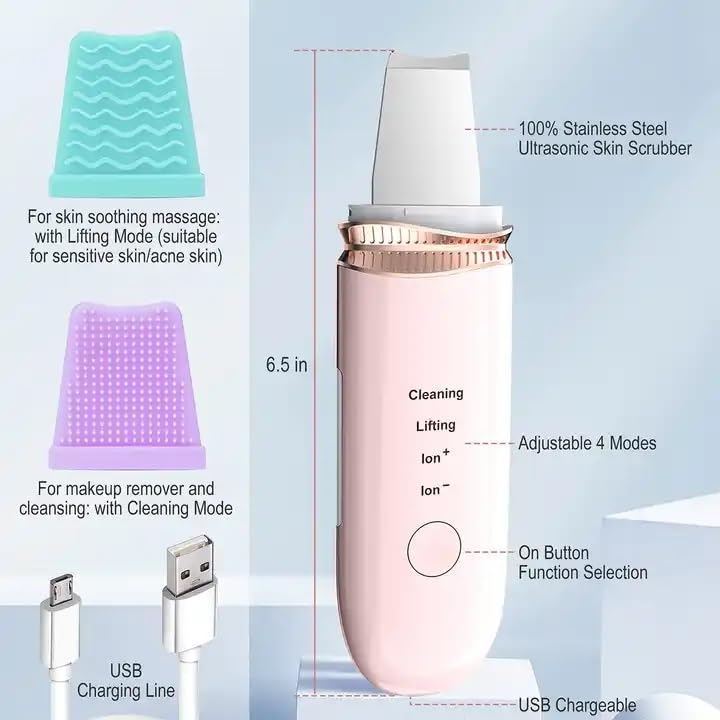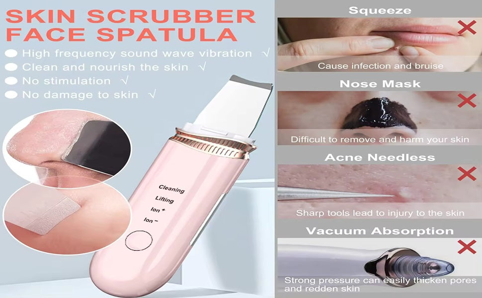 Ultrasonic Skin Facial Scrubber Face Spatula, Professional Deep Cleaning Skin Dirt Blackhead Remover Reduce Wrinkles and Spot Facial Lifting Peeling Skin Care Beauty Device Tool (Pink)