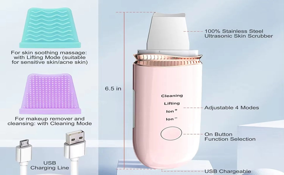 Convenient Facial Spatula: The 3D stainless steel spatula makes the facial spatula easy to cleanse every little corner of the face without leaving a mark, such as the side of the nose and between the mouth. Easily charged with USB Port(The original charging cable is recommended for charging), Turns off after 5 minutes of use and requires you to reboot to enable it. The skin scraper is small enough to take with you to the gym, or on vacation. It can be used everywhere.