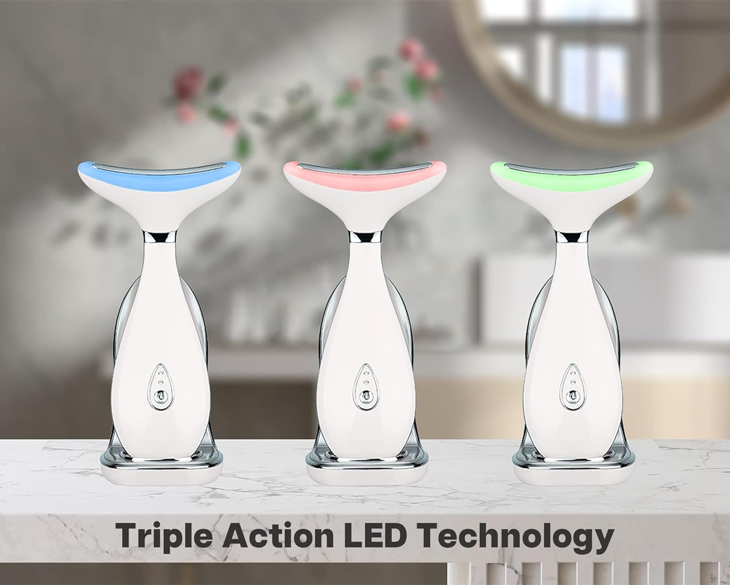 - TRIPLE ACTION BEAUTY DEVICE FOR NECK AND FACE: It features triple action LEDs which turn on different benefits for your skin based on dermatological theories, assist in rejuvenating and beautifying your skin of neck and face for radiant and glowing complexion.