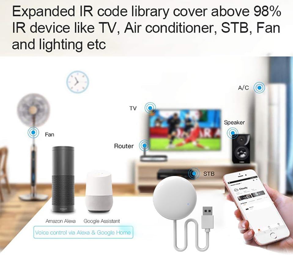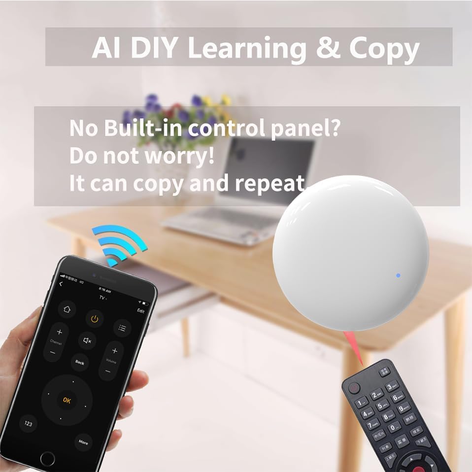 【Massive IR Code Database】Support AC,TV,Fan,Set box,etc as long as your home appliance has IR remote control; Support 4000+ brands, 50000+ IR Code on cloud, DIY learning is supported, Customizing button and Copy function in the "Smart Life" App;