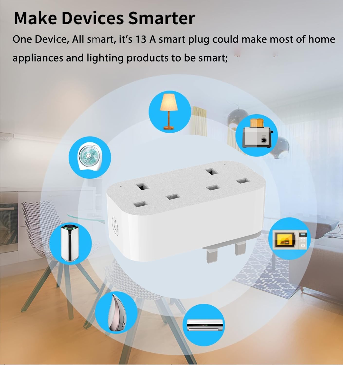 【Safety】Made of ABS and PC flame retardant material, it can effectively prevent flame and combustion and ensure the safety of users; Support remote control of household electronic equipment or appliances, such as mobile phones, lamps, rice cookers, kettles, coffee makers, water dispenser and other small appliances.