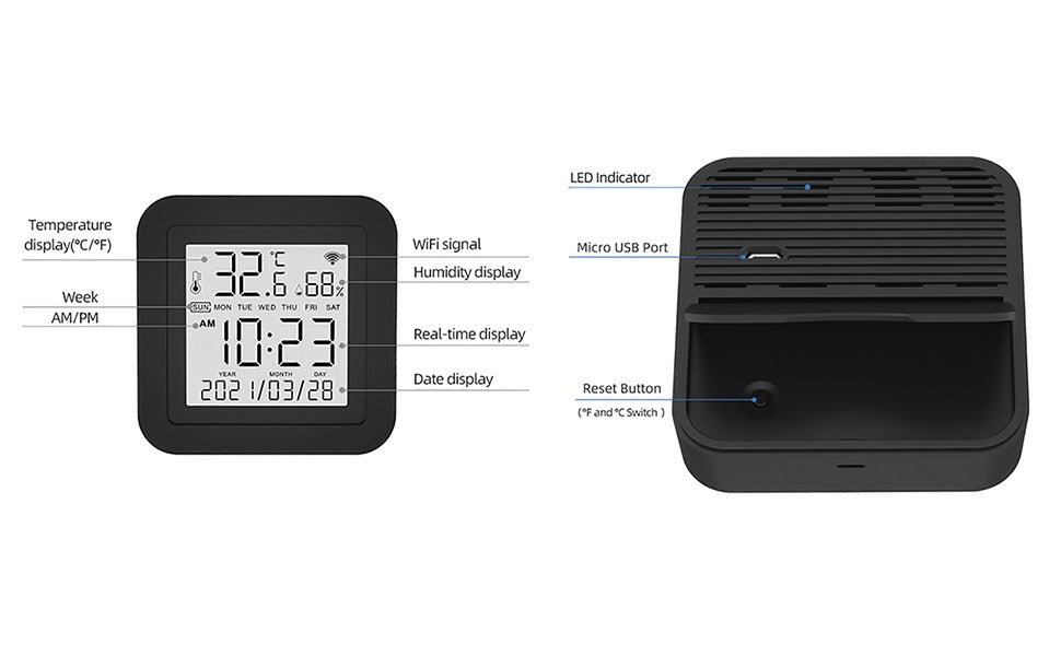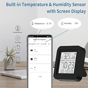 【Built-in Temperature & Humidity sensor and Built-in display screen】: With the help of the built-in sensor, you can know the temperature and humidity in the room at any time. And according to their values, do subsequent automation. For example, turn on the air conditioner when the temperature is higher than 26 ℃, and turn on the humidifier when the humidity is less than 50%;