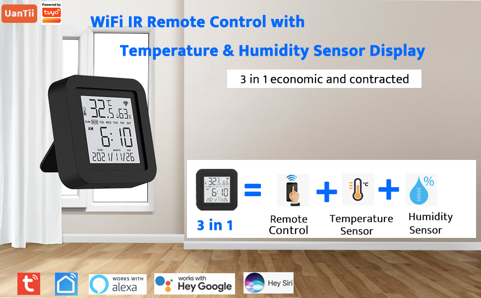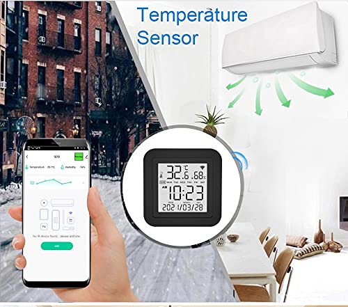 UanTii Tuya Smart Wifi IR Remote Control with Temperature and Humidity Sensor with LCD Screen Display App Remore Control Support Alexa and Google Assistant 3 in 1 IR Universal Controller
