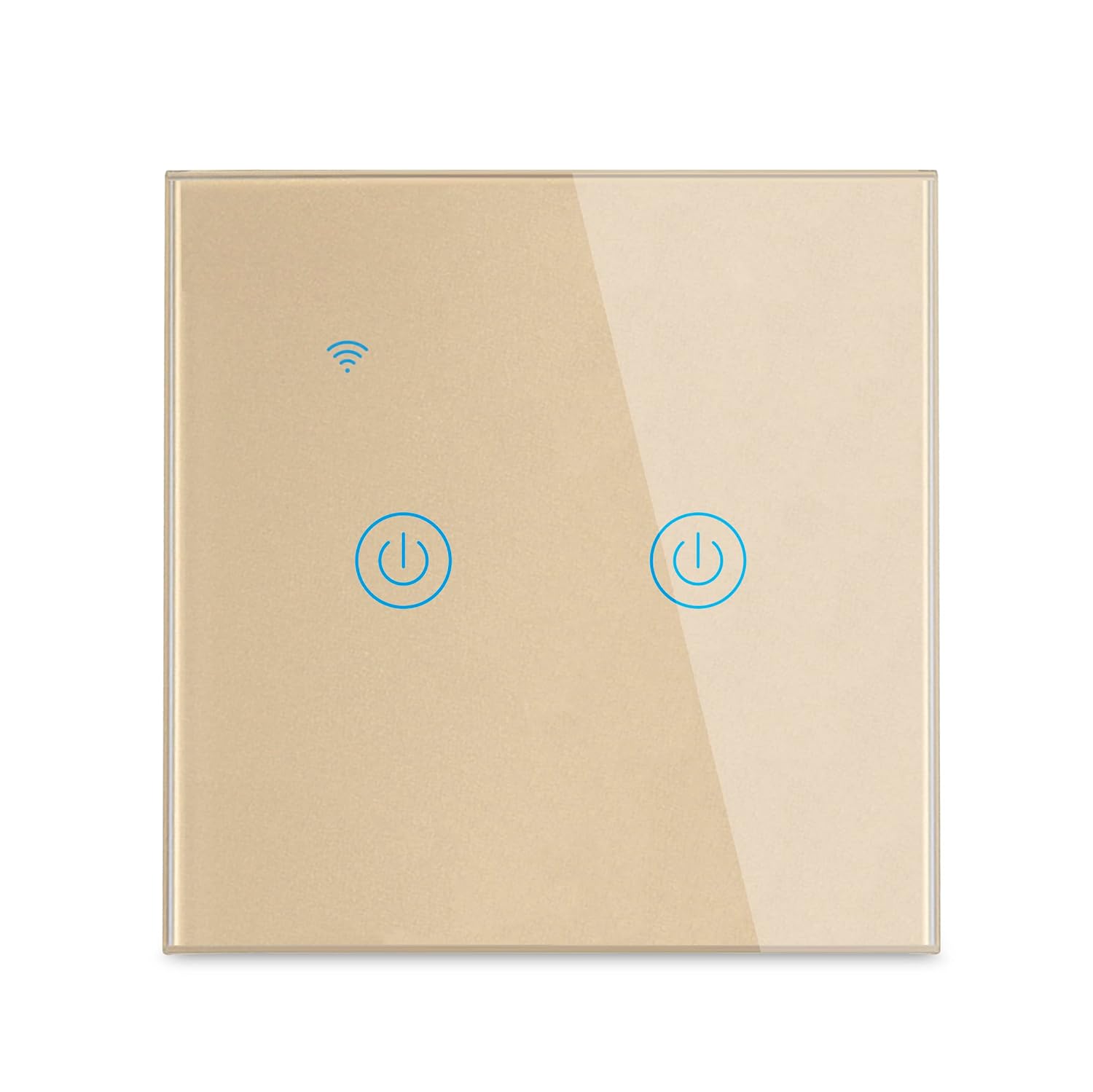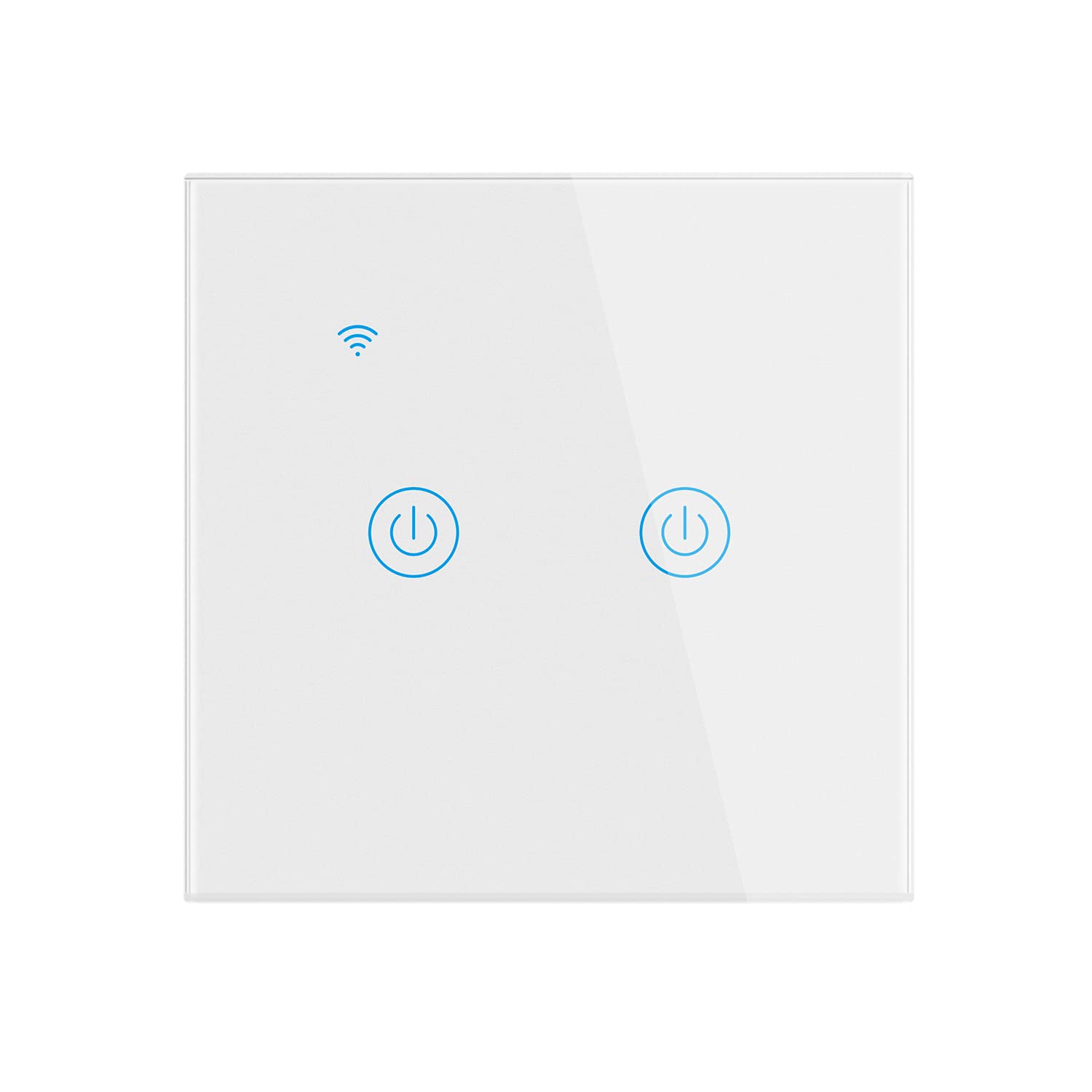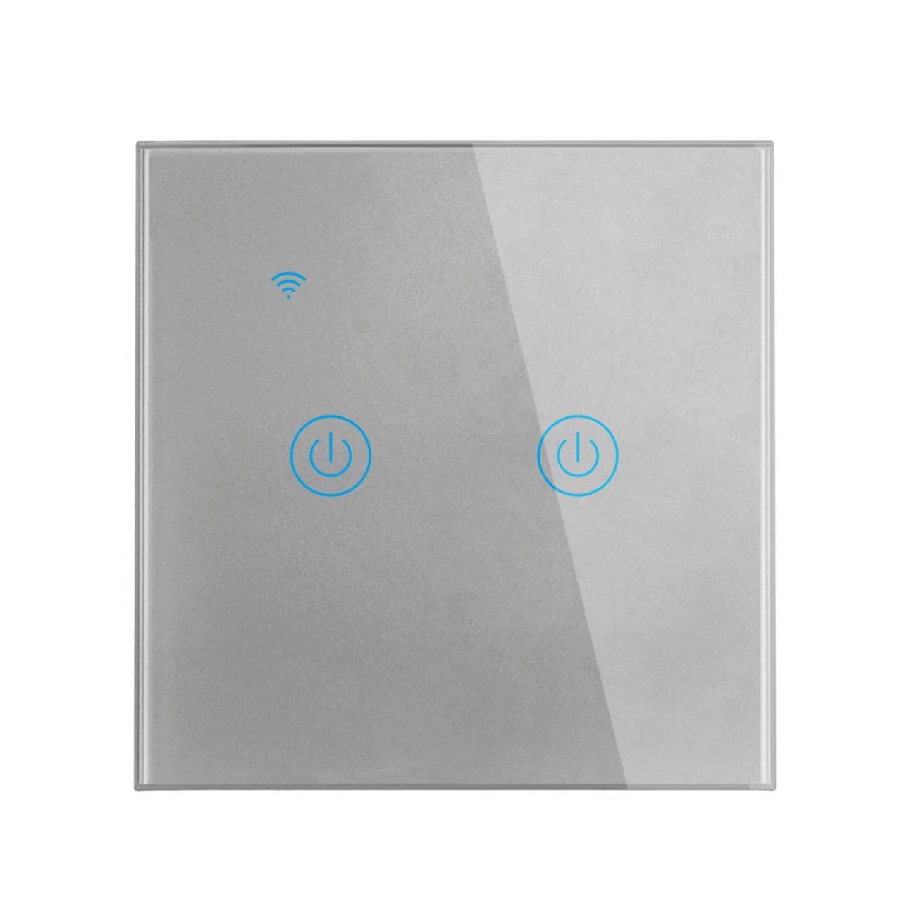 WiFi Smart Wall Light Switch Wireless Switches No Neutral Wire Required Compatible with Alexa and Google Home APP Remote Control Touch Switch, Voice Control, No Hub Required (White 2 Gang)