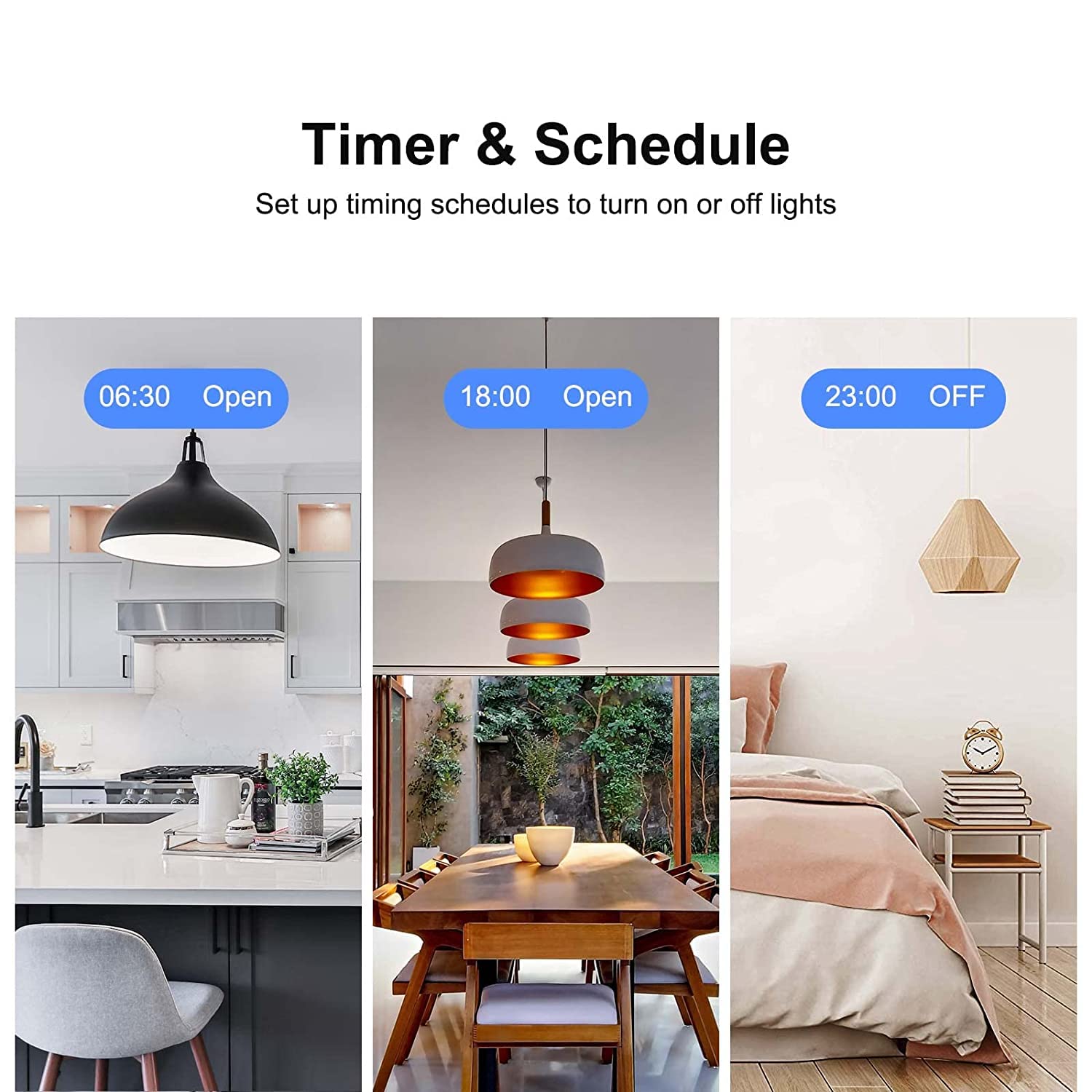â°ăTimer Settingă: Setting a schedule or timer on/off your lights on night and morning, and then your will never go back to a dark house when you go back home at dusk. Moreover, you could quietly waked up by scheduled light on every morning.