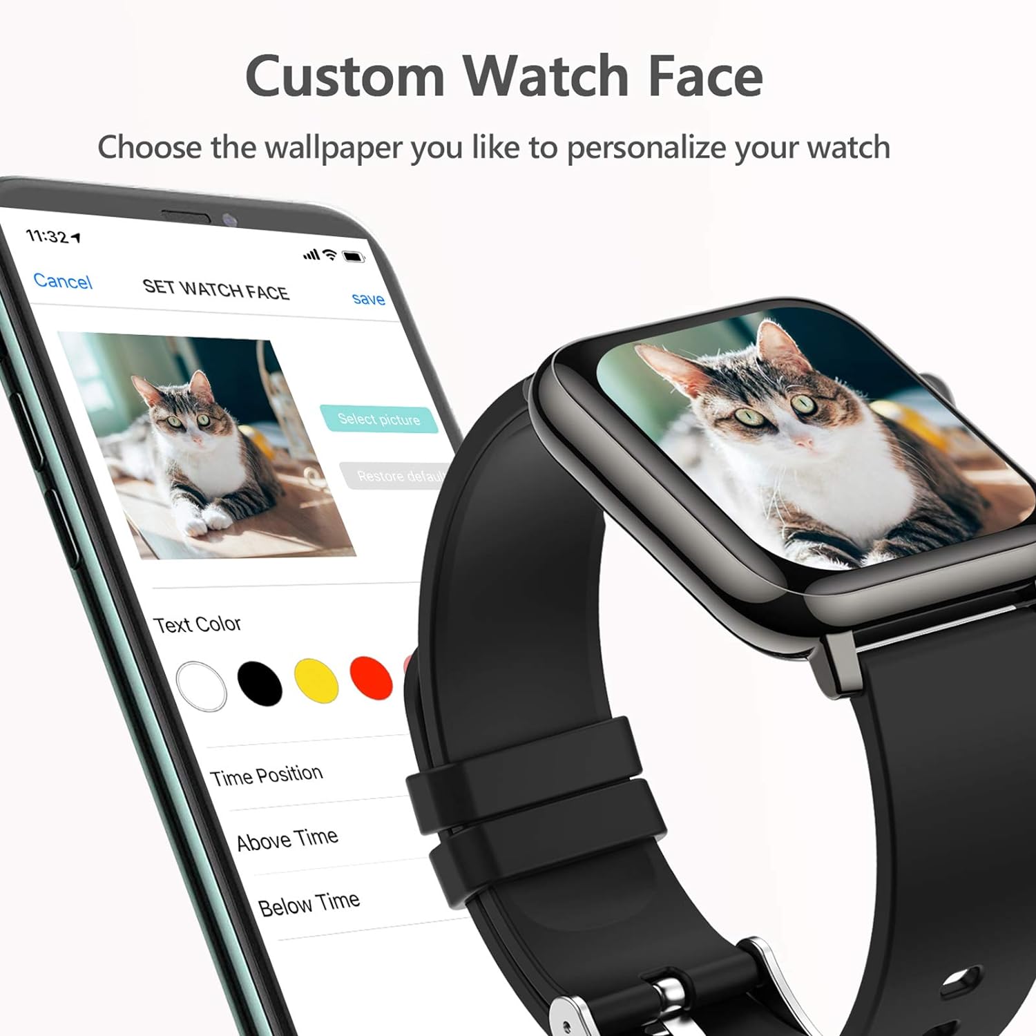 All-day Activity Tracking: This smart watch has 7 kinds of sports modes (Walking, Running, Cycling, Skipping, Badminton, Basketball, Football). The watch display shows your accurate steps, distance, calories, active minutes and you can see more detailed data on App.