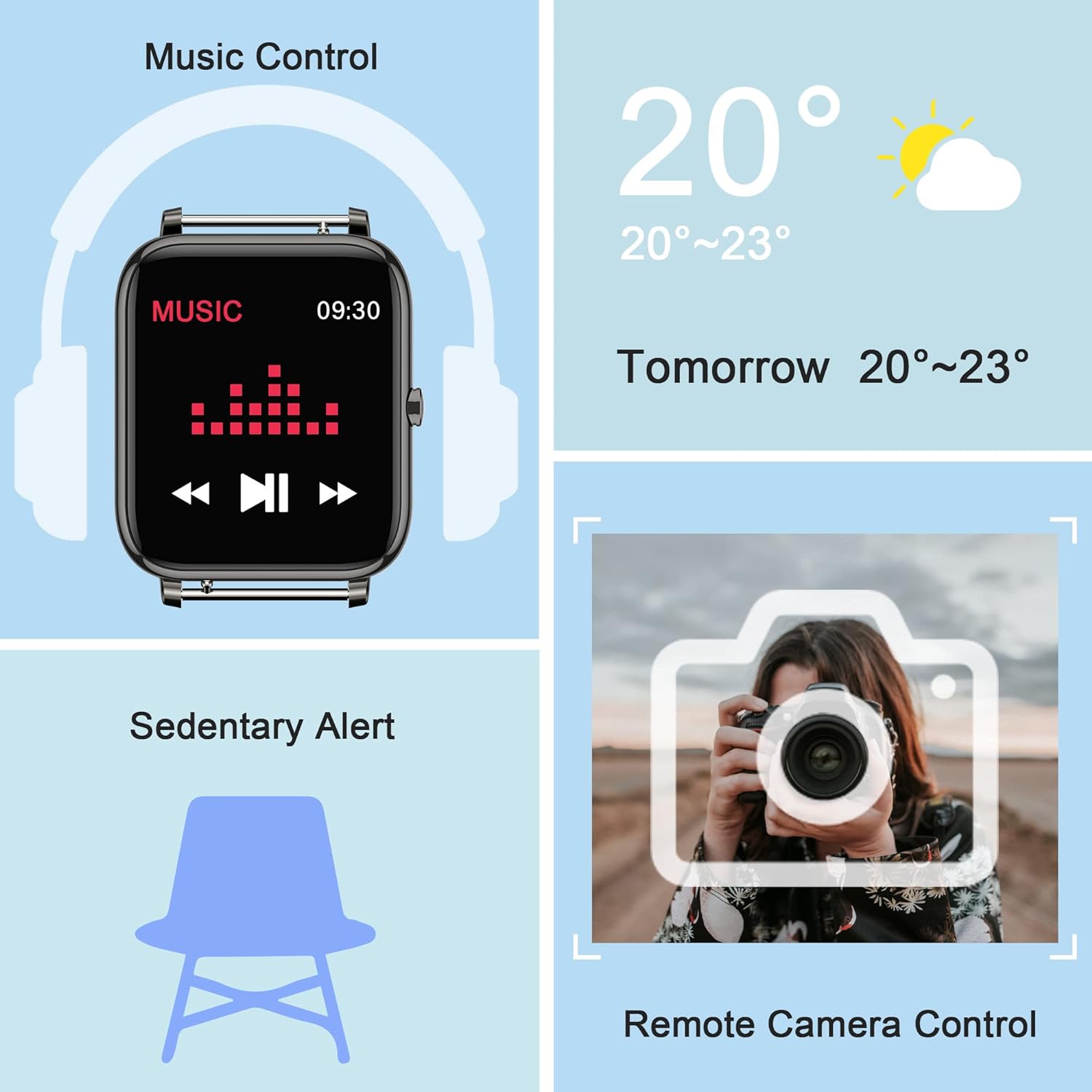 Notifications and More Practical Features: All messages and notifications will show on your wrist and remind you through vibration. It cannot answer call or text on watch. There are also many convenient functions like Timer, Wake-up Gesture, Find Phone, Sedentary Reminder, Music Control and Weather Display.
