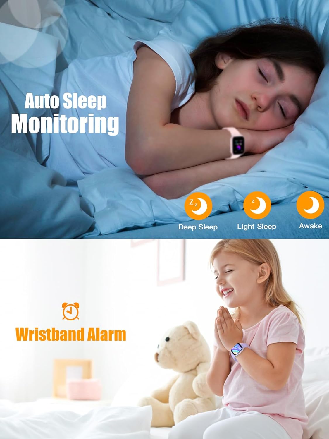 Heart Rate Monitor & Sleep Tracker: This kids smartwatch can accurately monitor the data of heart rate.Provide comprehensive analysis of kids sleep quality (deep sleep,light sleep and wake up time) to help kids develop a healthier lifestyle.(NOTE:The measurement data is for reference only and cannot be used as medical monitoring data.)