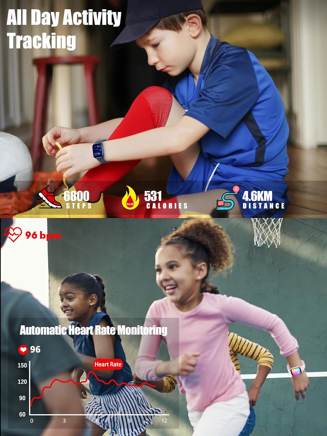All-Day Activity Tracking: Supports 19 sport activity modes.Automatically tracks your kids steps,distance and calories burned.You can see detailed data on the H Band APP.The watch is also waterproof so it can be used while swimming.