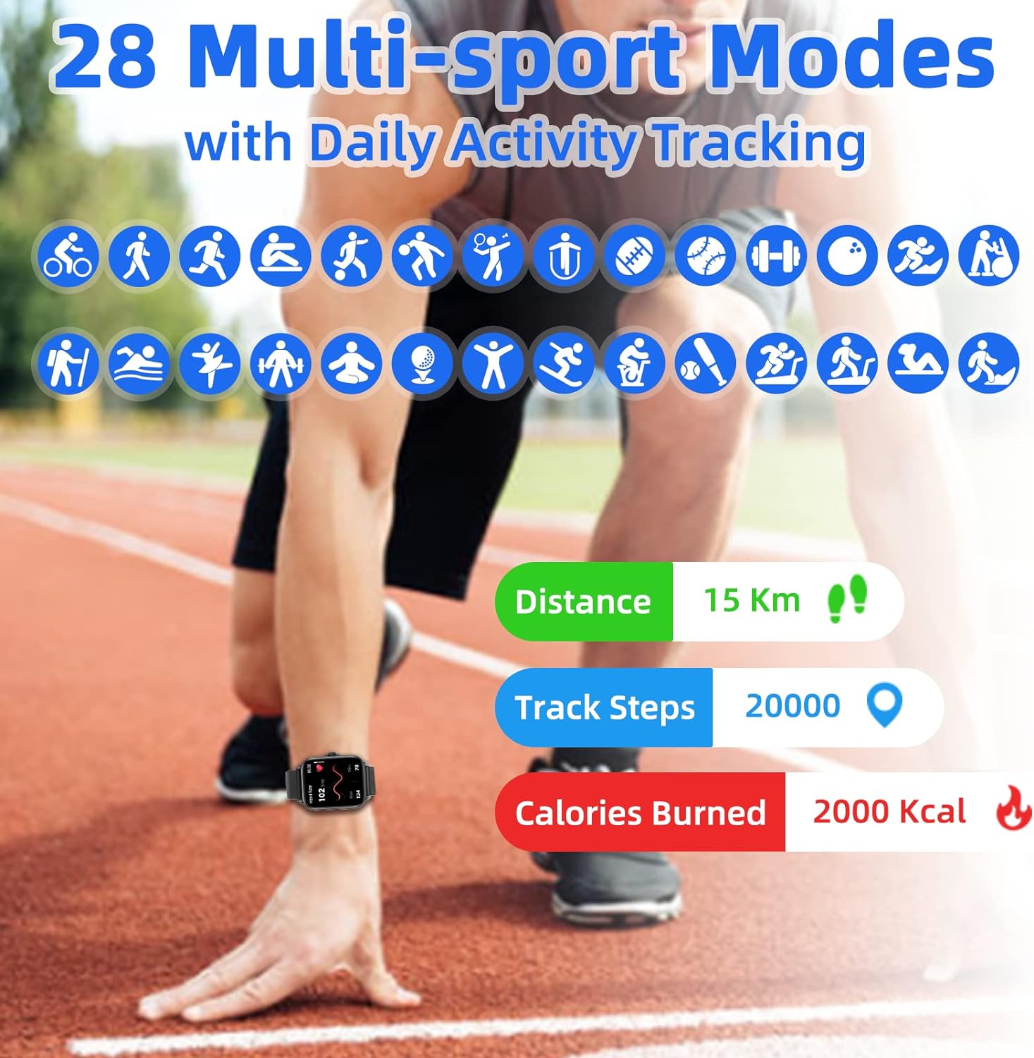 Smart Watch with Phone Function, Make/Answer Call AI Voice Control, Smartwatch with 28 Sport Modes Pedometer Blood Oxygen Heart Rate Sleep Monitor, Fitness Watch for Android and iOS Phones Men Women