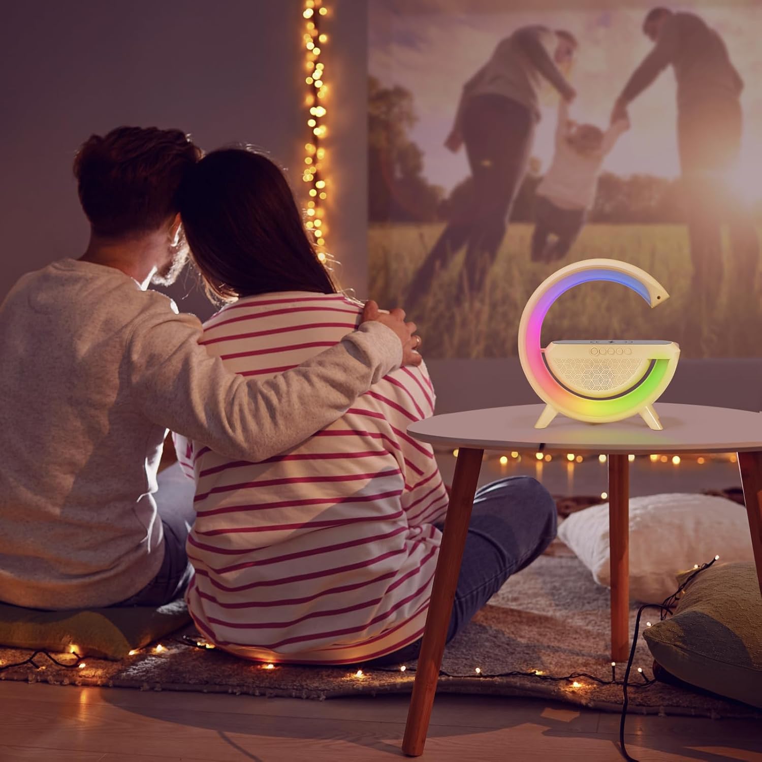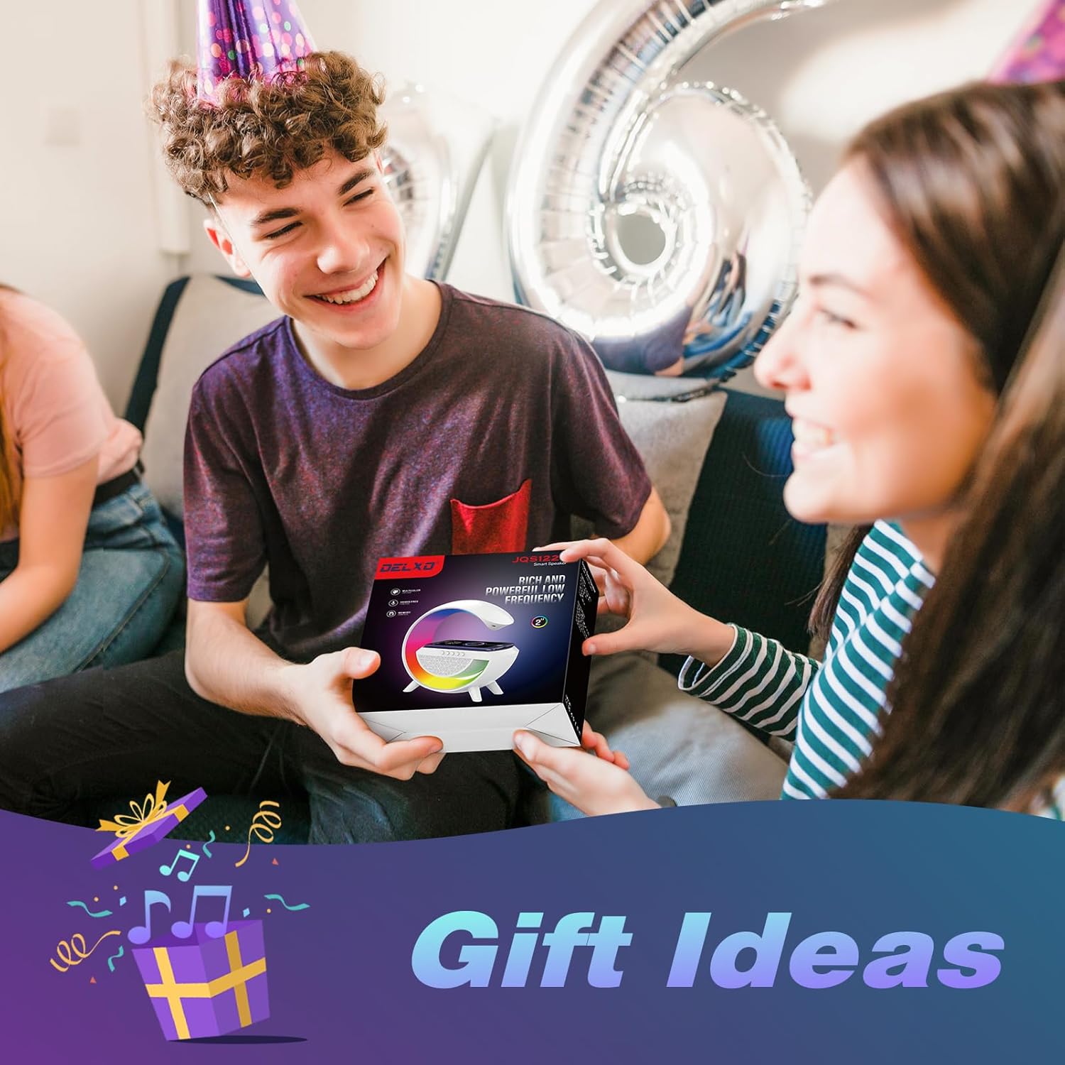 Delxo Bluetooth Speakers,Portable Wireless Bluetooth Speaker for Home Party Office Bedroom, AM FM Radio Speaker with Wireless Charger, Atmosphere Lamp,Dual TWS Pairing, BT5.3, Birthday Gift (White)